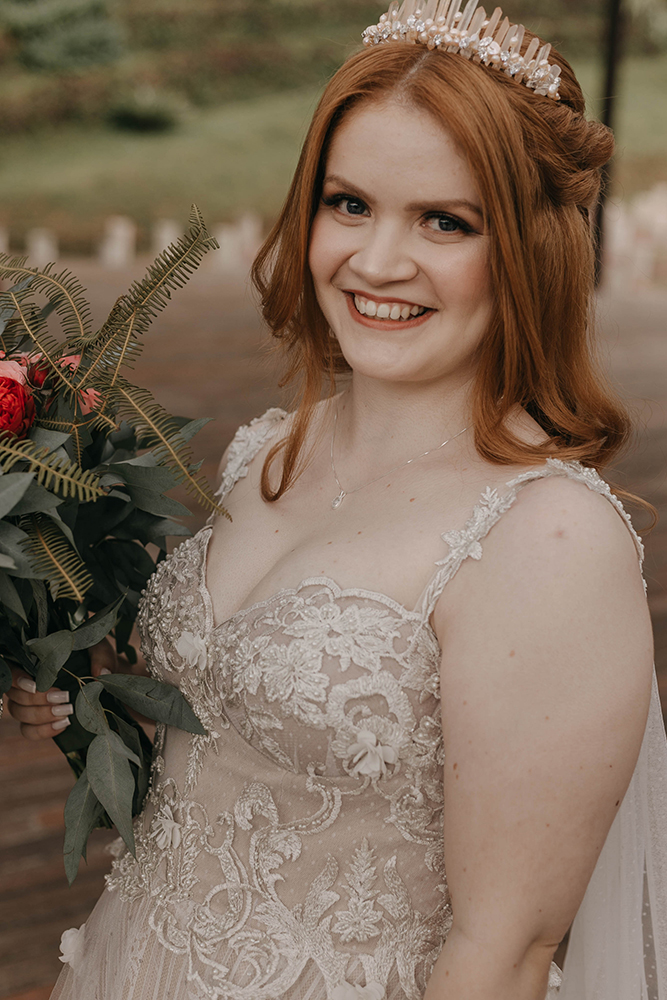 Da meia divertida ao vestido rendado, passando pelo buquê romântico e beleza delicada, Jackie ficou uma verdadeira princesa moderna.