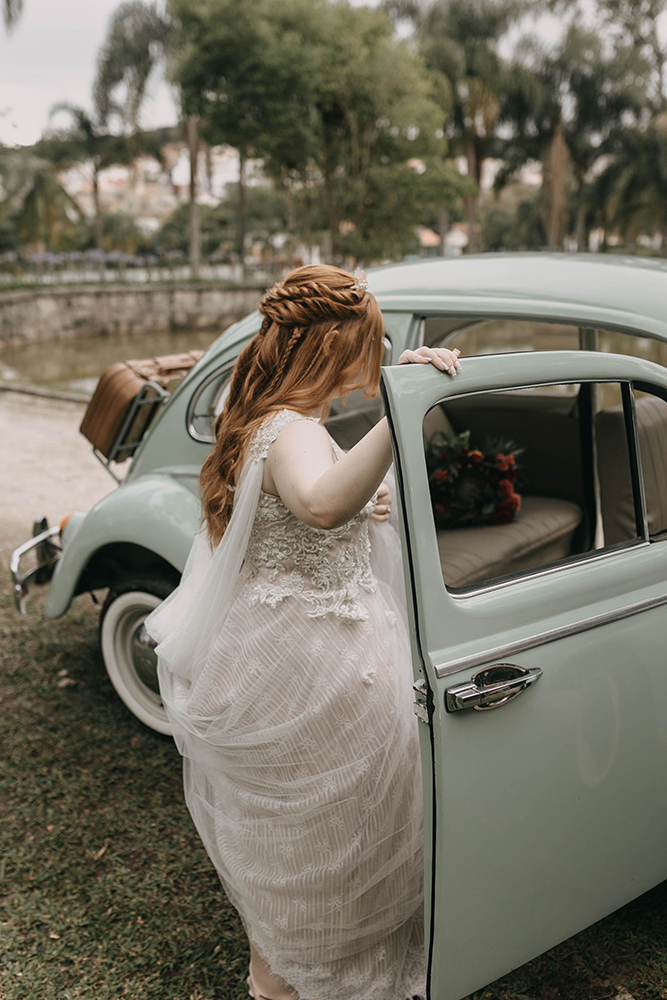 Para as escolhas e decisões da noiva (e em partes do noivo também), eu digo: NÃO TENHAM MEDO DE SER QUEM SÃO. O que vocês gostam, vestem, ouvem e admiram são justamente quem são e o que fez esse dia ser possível, o que fez um se apaixonar pelo outro, então por que privar essas coisas no dia mais especial da vida de vocês por conta de gosto de convidados? Meu casamento teve noiva de botas, fusca, noiva sem véu/de capa, show de rock e bolacha gourmet ao invés de bem casados. Isso é essência. E, pra nossa sorte, o ambiente estava tão agradável e com alegria contagiante que ninguém resistiu a nada.