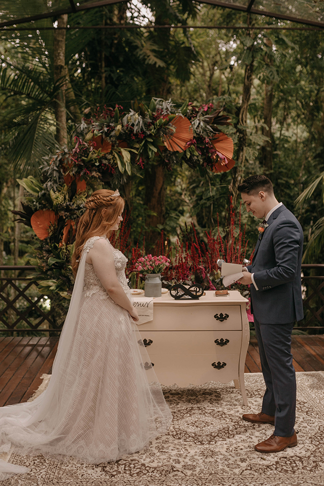 Além de optarem por um cenário único e tão especial, os noivos se jogaram de cabeça nos preparativos e construíram uma festa extremamente pessoal.