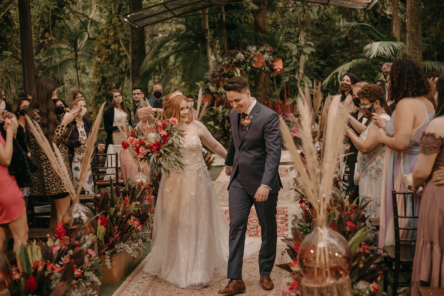 Dessa maneira, tivemos a sorte de noivar justamente antes da pandemia, o que possibilitou a contratação de alguns fornecedores importantes e super relevantes, como a Casa Giardino. Nunca tivemos pretensão por uma data específica ou preferência, a única coisa que gostaríamos era ambiente aberto, natureza e tempo bom. O Vitor, da Casa Giardino, nos indicou então que pegássemos a data disponível em outubro, por conta da primavera.