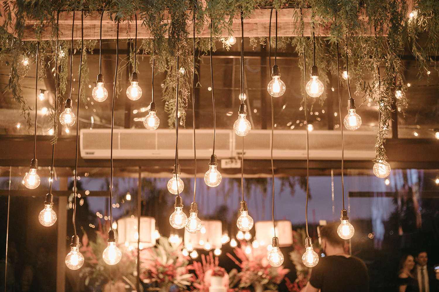 Decoração. Depois que contamos nossa história com o número 8 (que nos ronda sempre), e a importância dele significar um infinito pra nós, o Danilo da Naomi Decor propôs colocar o infinito de alguma forma no casamento. Na primeira aprovação de layout ele nos surpreendeu grandemente fazendo o símbolo com pendentes na nossa mesa do casal.