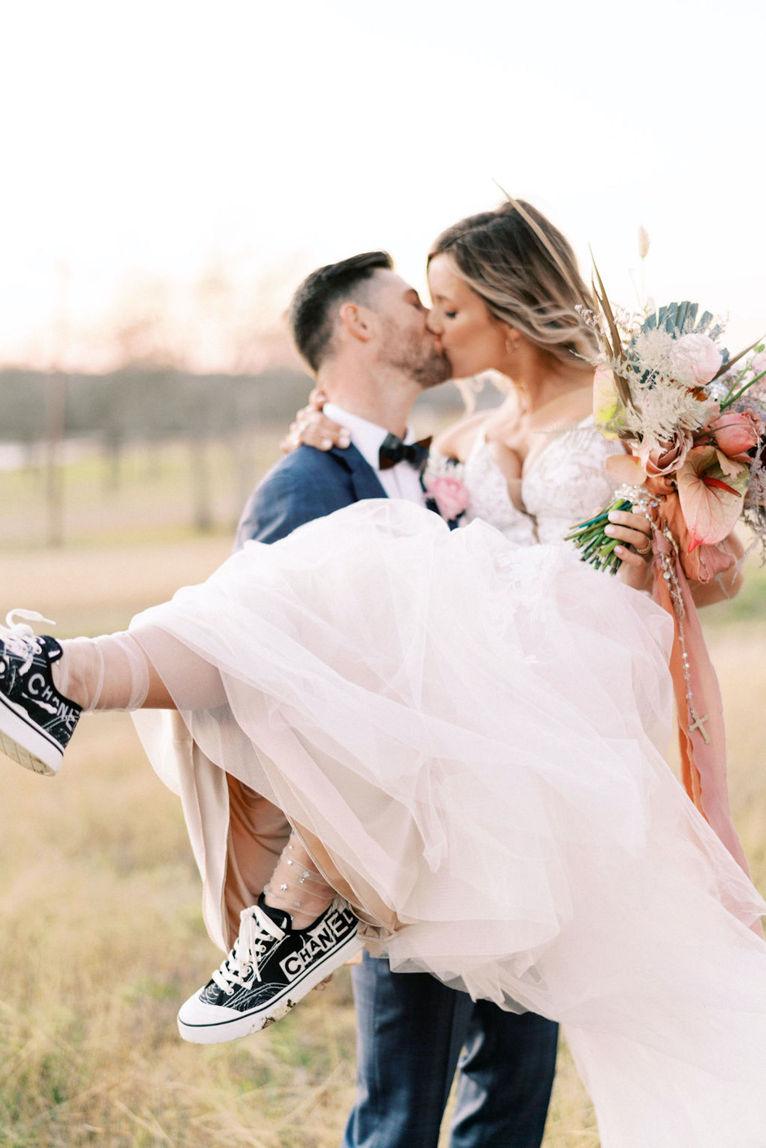 Por outro lado, o tênis também pode ser uma escolha pautada em estilo, afinal, se a noiva usa calçados despojados no dia a dia, não faz sentido trocá-los por salto alto para casar.