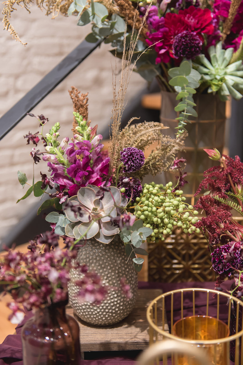 A decoração em tons de marsala, que deixou todo mundo encantado e ainda presenteou as mamães com lindos buquês, é da De Flor e Alma. Uma belezura só!