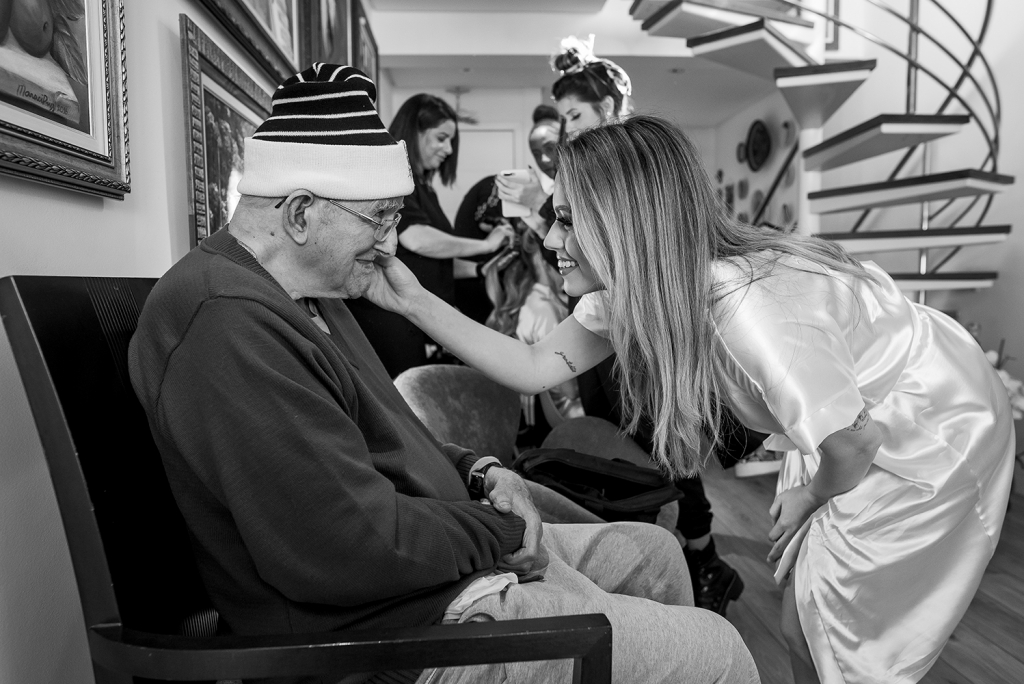O “sim” teve a participação pra lá de especial do avô da Paola, o que garantiu uma dose extra de emoção no momento das alianças.