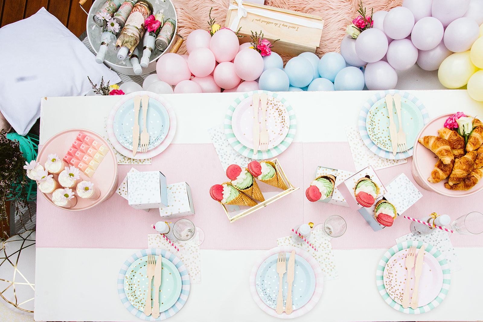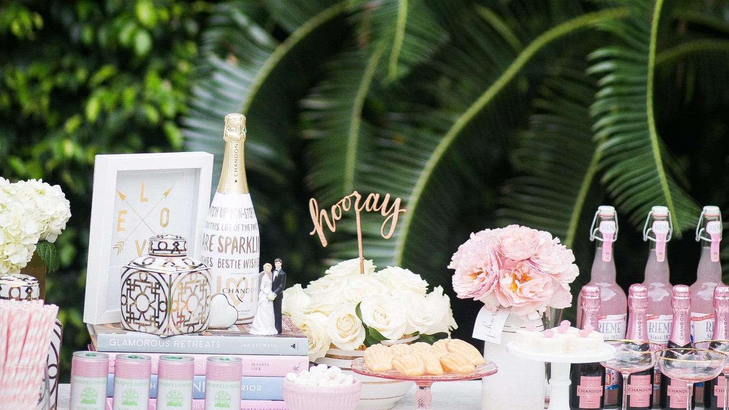 Dá pra investir em uma decoração personalizada, incluindo plaquinhas com os nomes das convidadas.