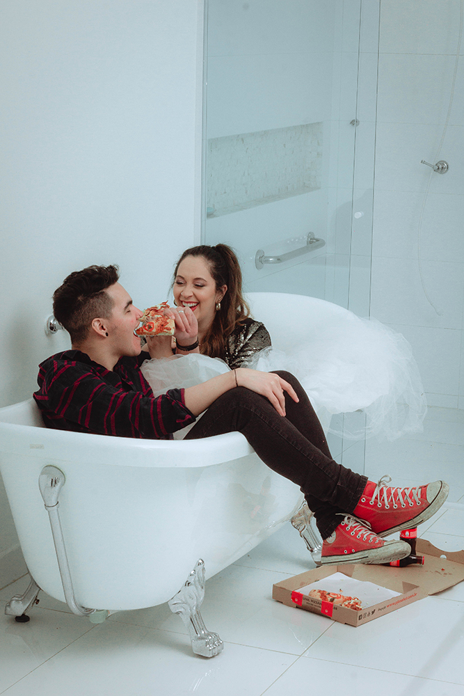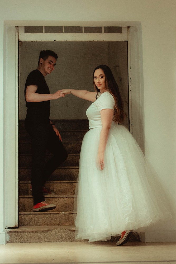 Ao planejarem as fotos pré casamento, não tiveram dúvidas e optaram por um clima totalmente fora do padrão.