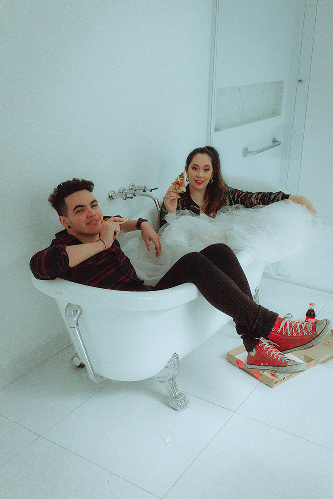 Pensamos em misturar algumas fotos para criar um ensaio com pegada de editorial desconstruído, justamente para colocar nossa cara e estilo.