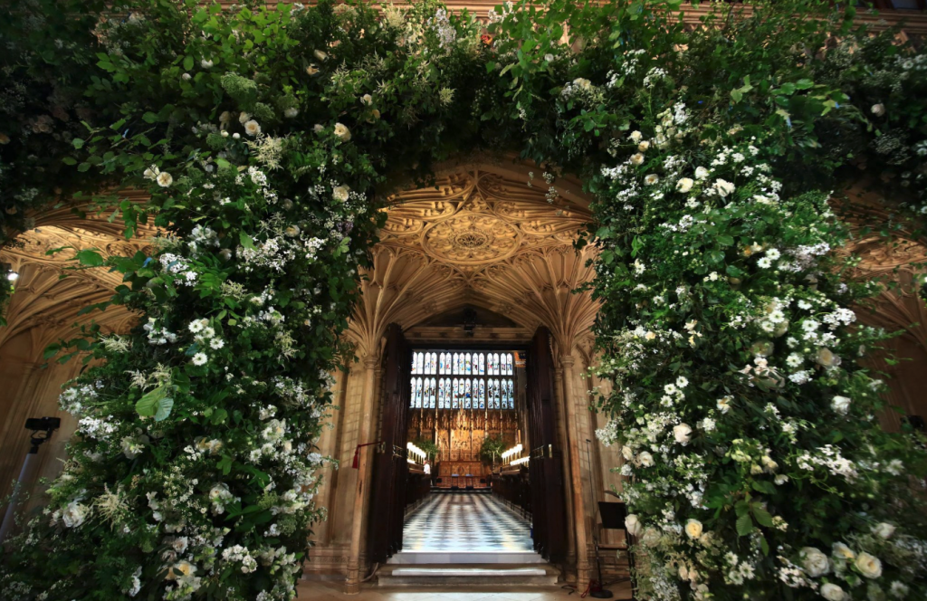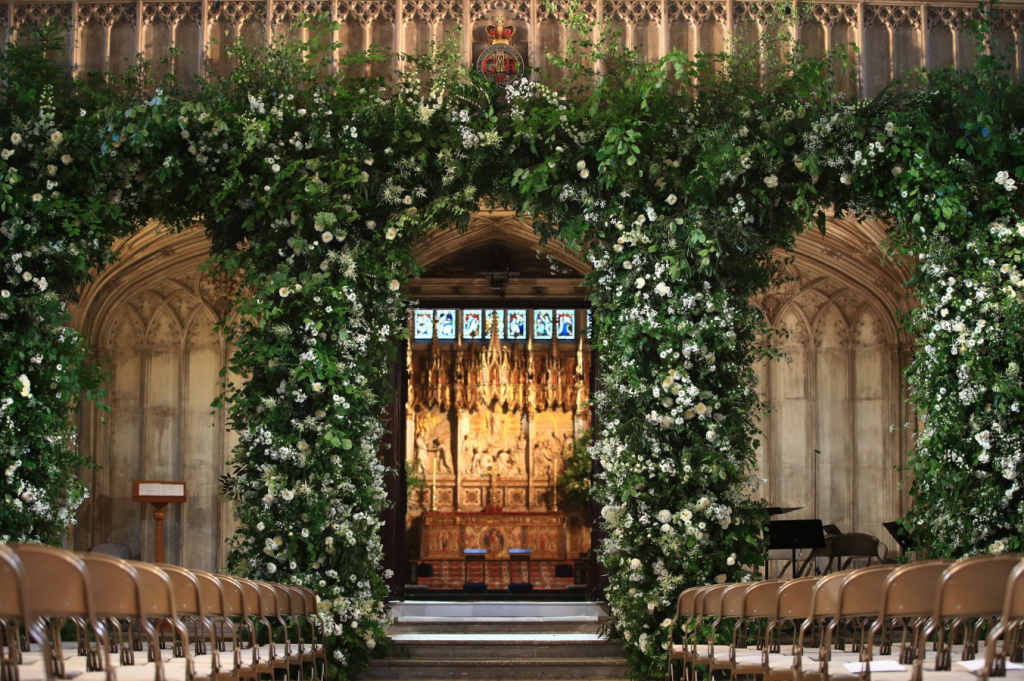 A cerimônia aconteceu na Capela de St. George, no castelo de Windsor, e a recepção no St. George’s Hall.