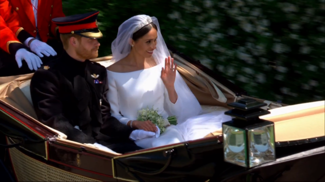 O trajeto entre a cerimônia e a festa também foi acompanhado pelas câmeras e pelos súditos, para quem Meghan e Harry acenaram o tempo todo da carruagem Ascot Landau, tradicionalmente usada em eventos oficiais.