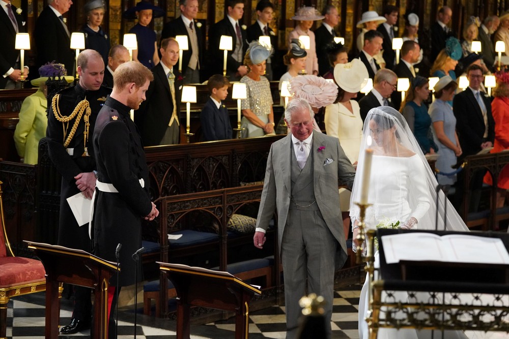 A cerimônia foi emocionante, a começar pela entrada da noiva, que fez metade da marcha nupcial sozinha, para depois caminhar de braços dados com o sogro, Príncipe Charles.