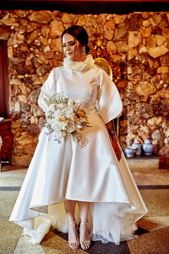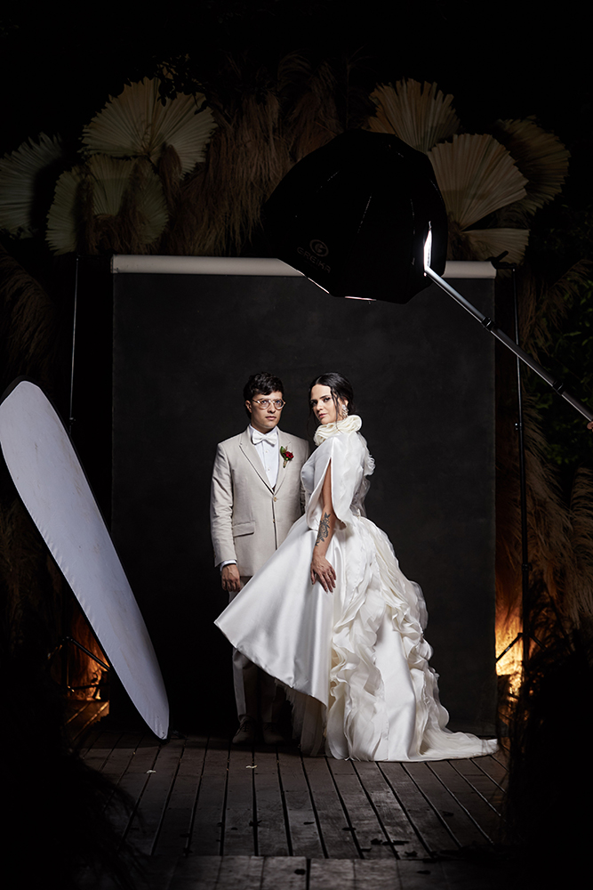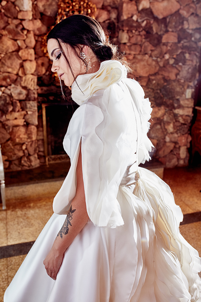 Como resultado, nasceu uma joia de vestido, esculpindo o corpo estrategicamente, revelando uma grata surpresa ao olhar em cada ângulo observado. Uma verdadeira obra-prima da equipe do Fernando Peixoto Atelier, longe de qualquer clichê da moda nupcial.