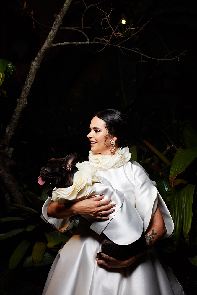 A cachorrinha do casal, uma buldogue francês chamada Kiki, participou do casamento em Brasília.