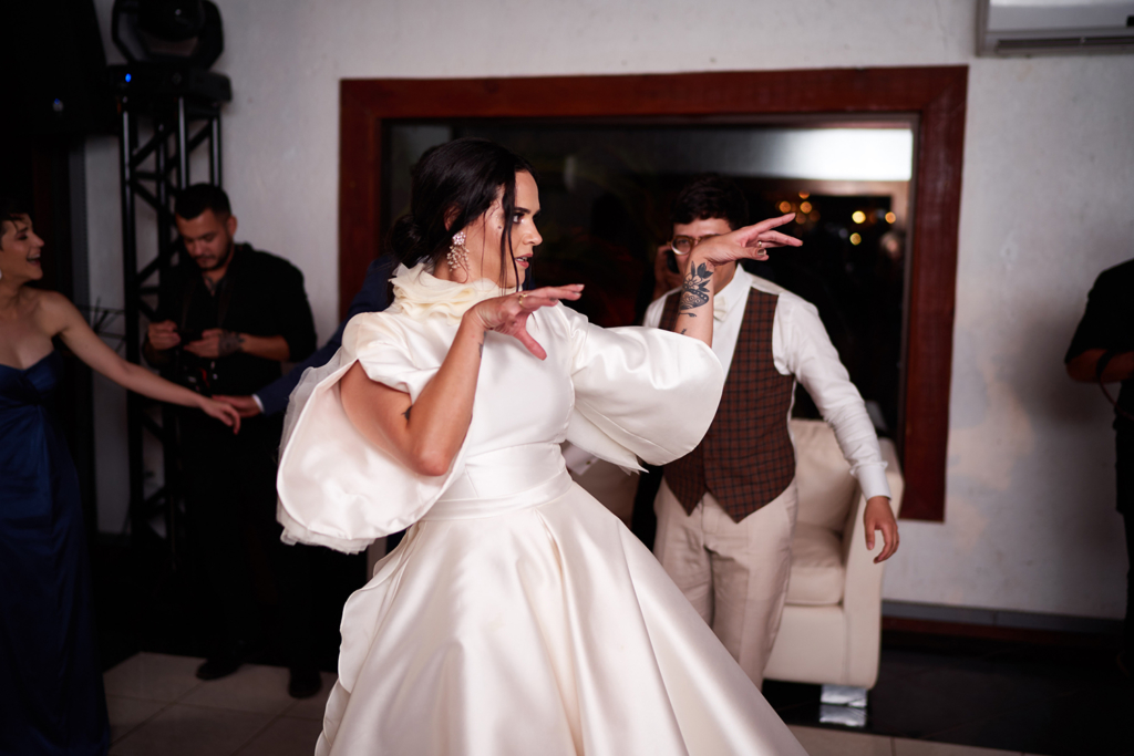 O trio, juntamente com familiares e amigos – todos do Rio Grande do Sul -, surpreendeu os noivos interpretando um dos sucessos do rock gaúcho, Amigo Punk (Graforreia Xilarmônica), ao vivo na pista de dança. Mais especial, impossível!