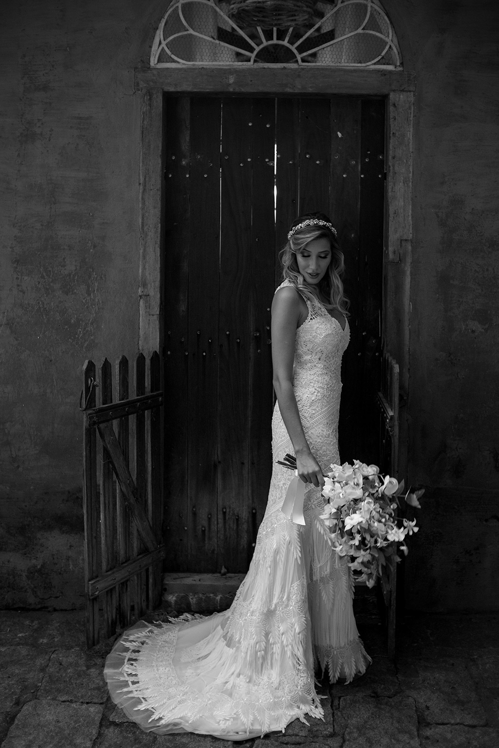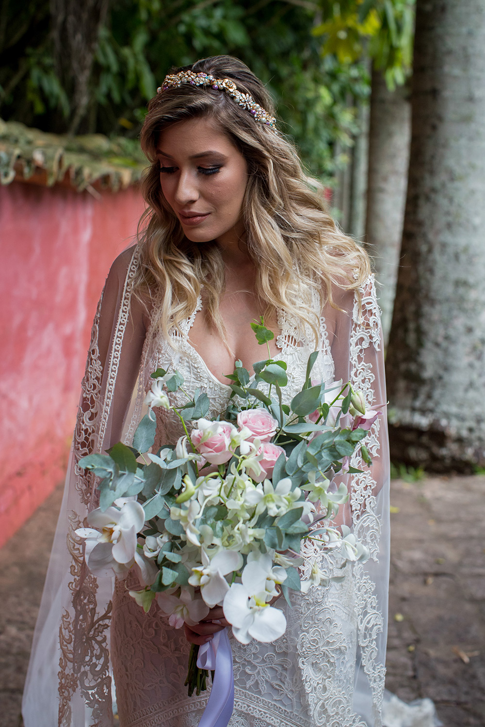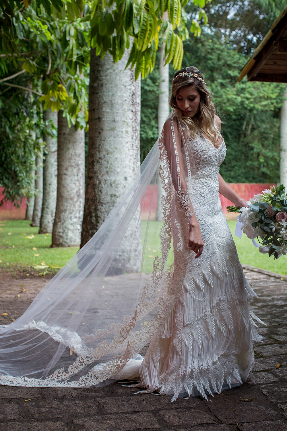Meu vestido também foi no estilo boho, feito pela incrível Yolan Cris, com direito a mistura de rendas, bordados em mini pérolas e franjas de seda. Para acompanhar, o acessório do Atelier Girardi em forma de guirlanda de flores feitas em pedras e metal nobre.
