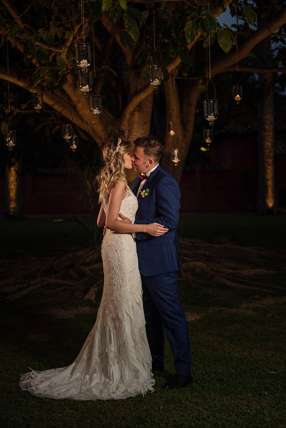 O lugar escolhido caiu como uma luva para os desejos dos noivos, que disseram sim sob uma grande figueira.