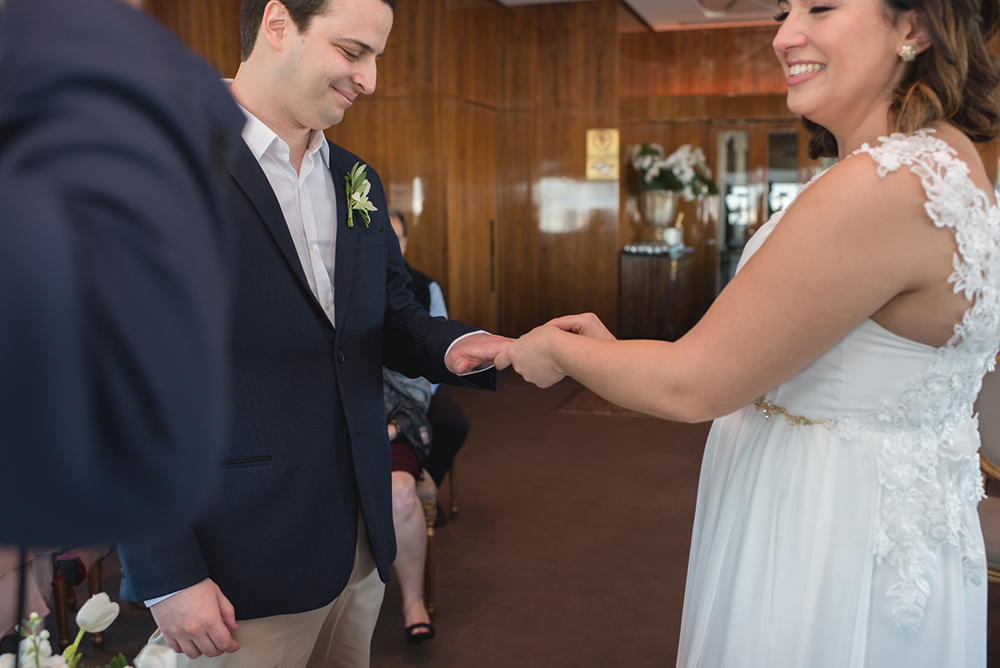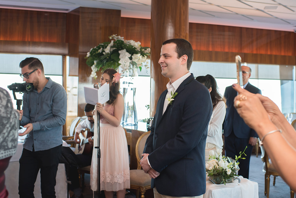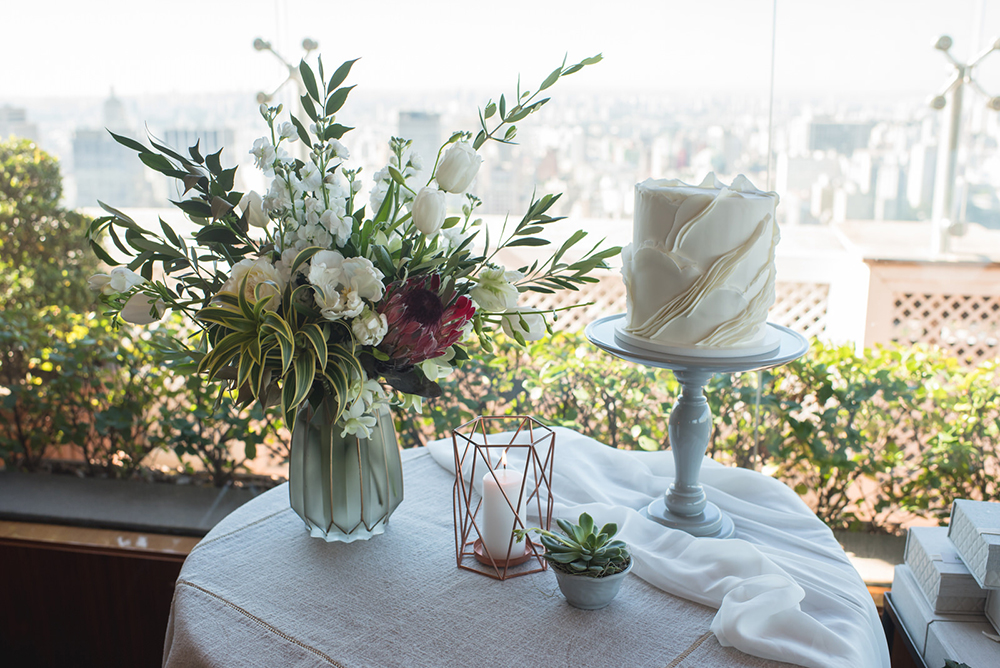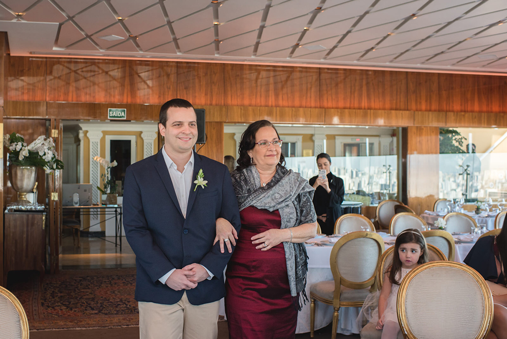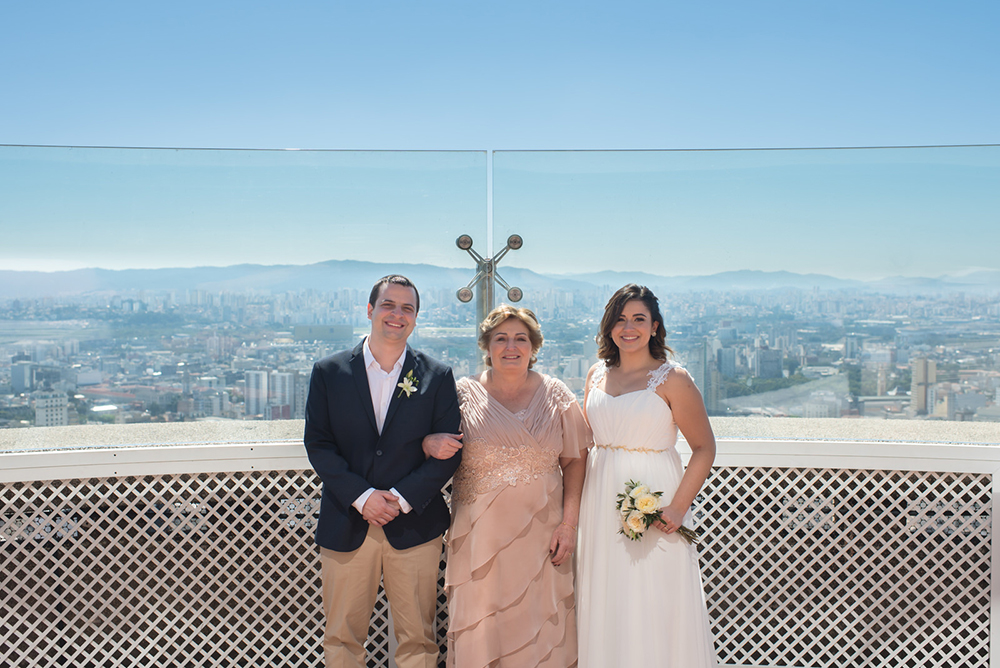 Como eles terão uma segunda comemoração em breve, no litoral, o casamento civil no Terraço Itália teve uma proposta bem intimista, para familiares próximos e amigos mais chegados.