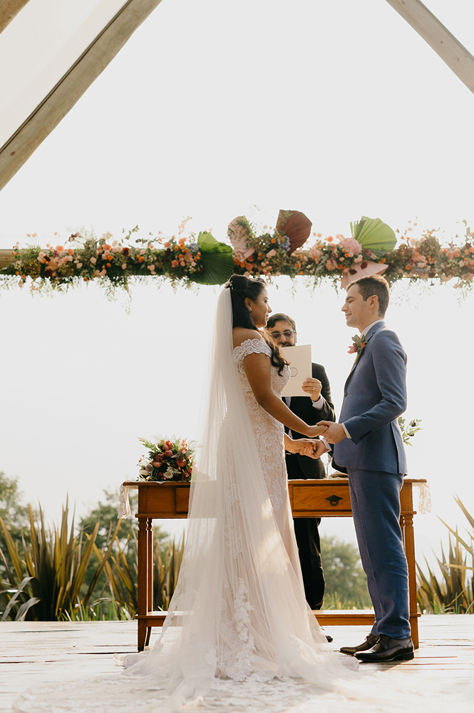 A troca de alianças com direito ao pôr do sol mágico do Quinta da Cantareira foi ainda mais bonita do que imaginavam.