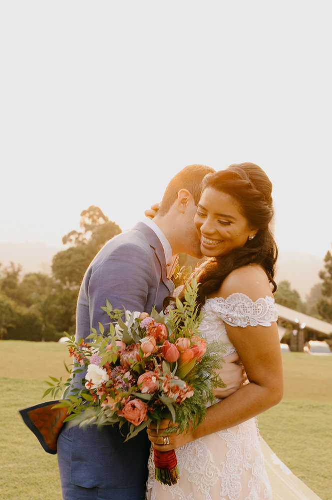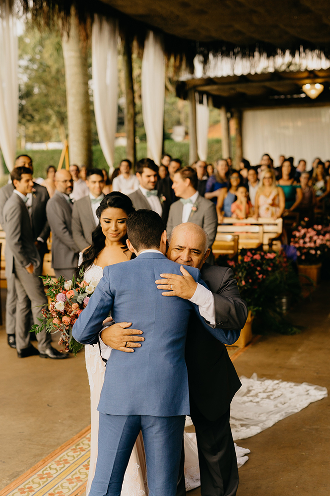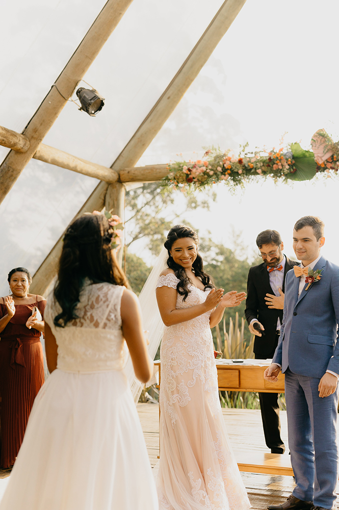 “Decidir sobre o local foi fácil. Depois de uma tarde de chuva, mas com um dia lindo, estávamos passeando pela Serra da Cantareira e passamos em frente ao Quinta da Cantareira, bem no pôr do Sol. Eu me vi casando nesse lugar, naquele lindo fim de tarde!