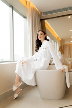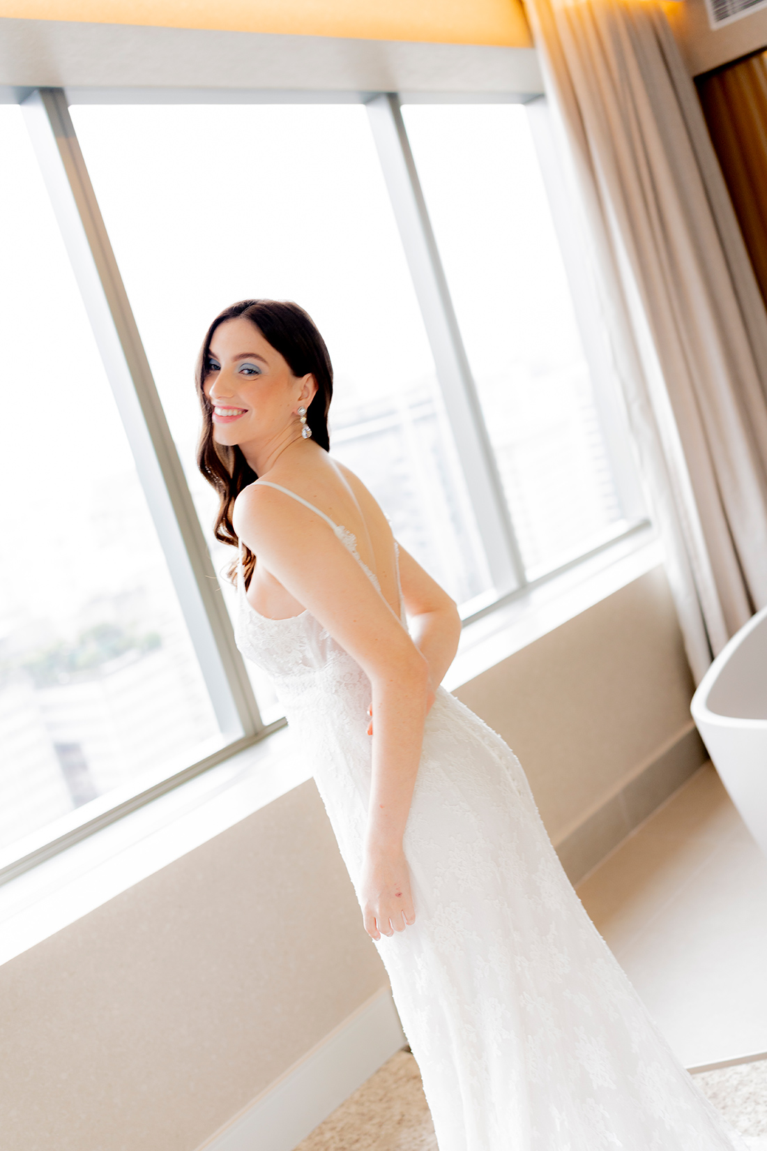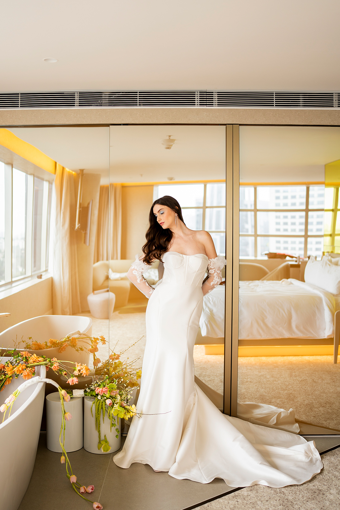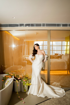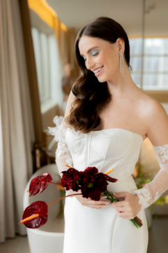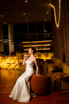 Localizado em um dos pontos mais vibrantes da cidade, o hotel se destaca por seu design arrojado, além da atmosfera cosmopolita que foge do óbvio. Esse cenário urbano e elegante serviu como base perfeita para uma produção que valoriza a noiva moderna, criativa e segura de sua identidade.