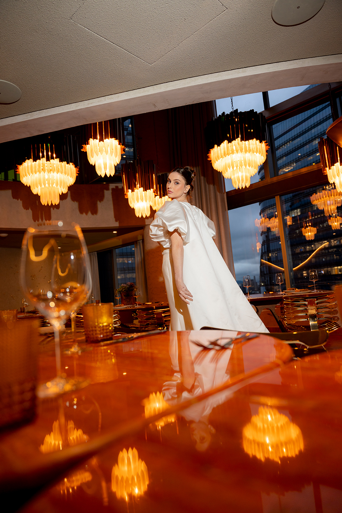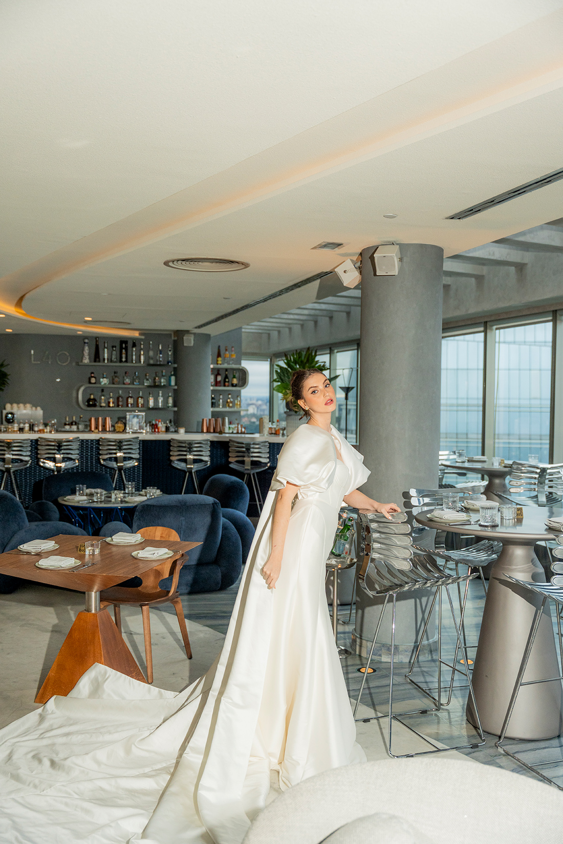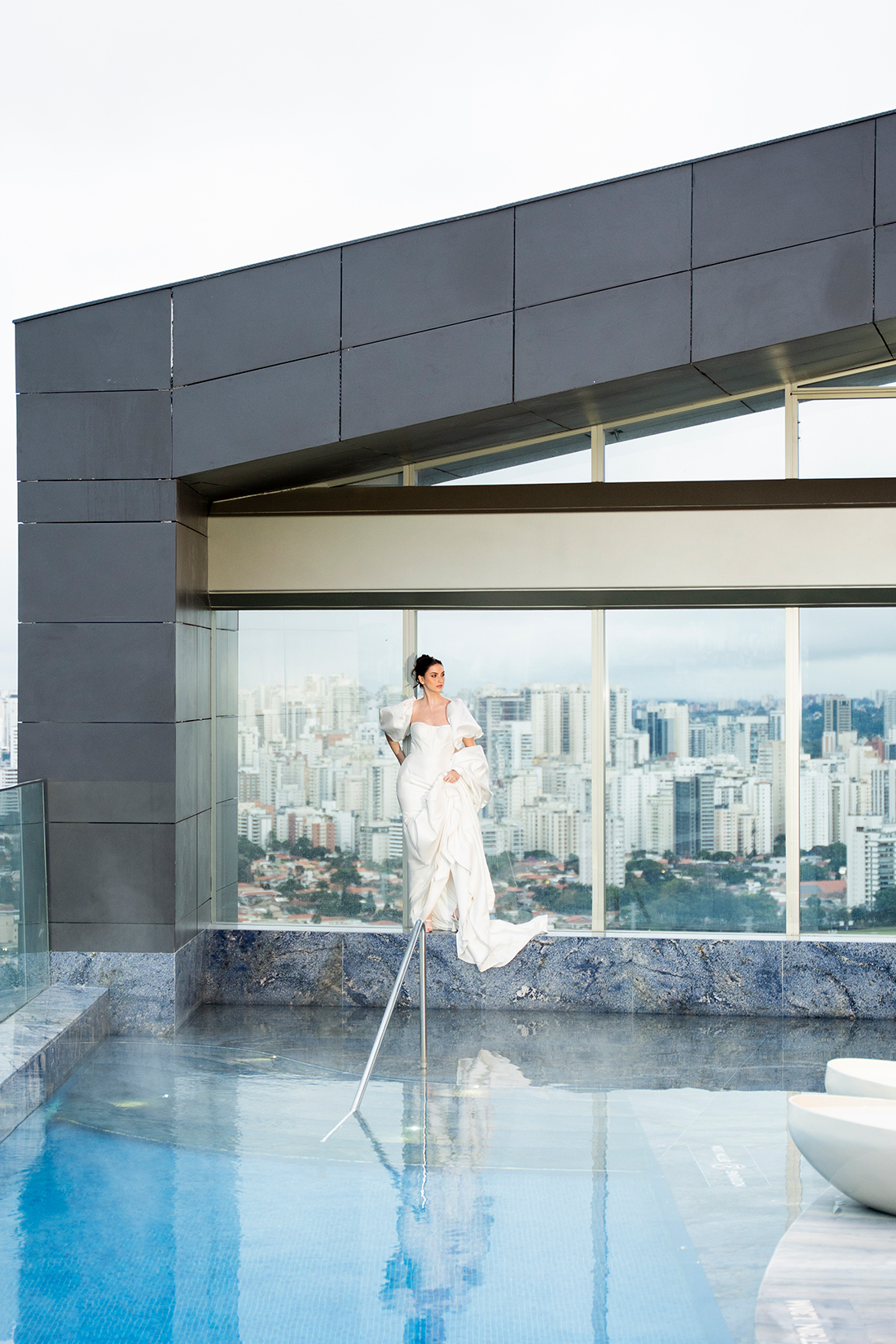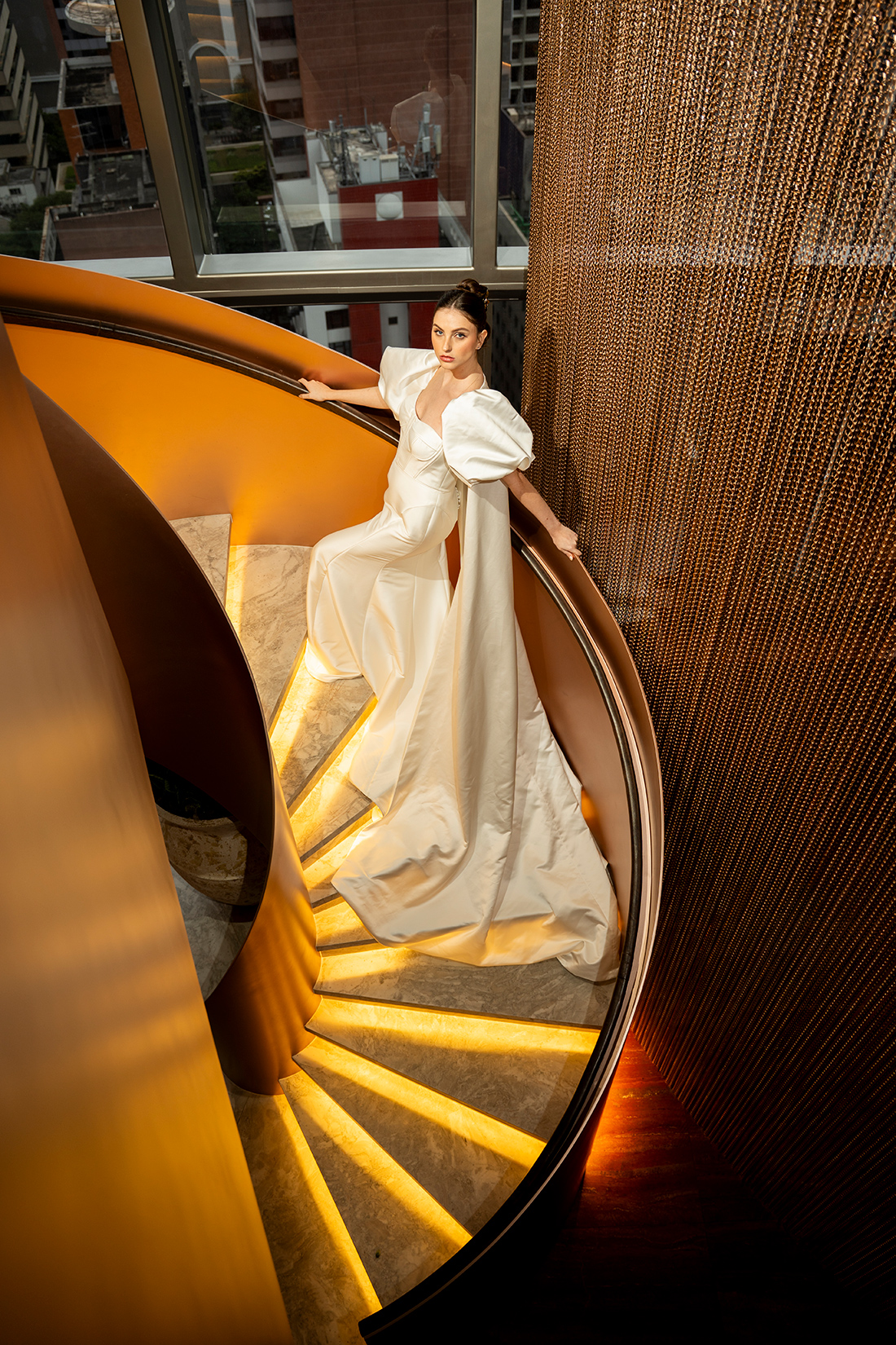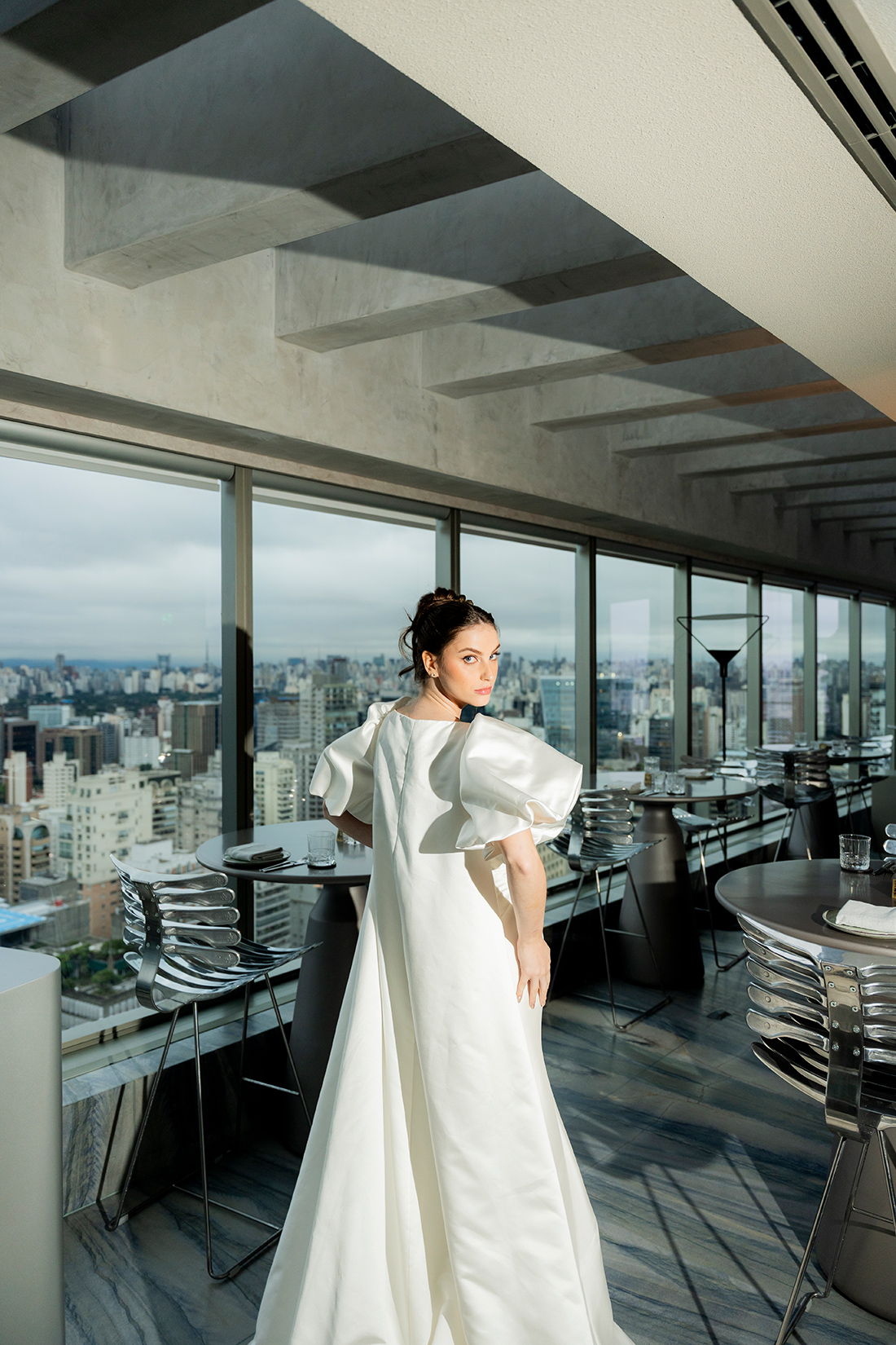 Em um cenário que mistura arquitetura imponente, interiores modernos e uma atmosfera cosmopolita, o ensaio propõe um olhar de moda, mas também aplicável aos casamentos reais.