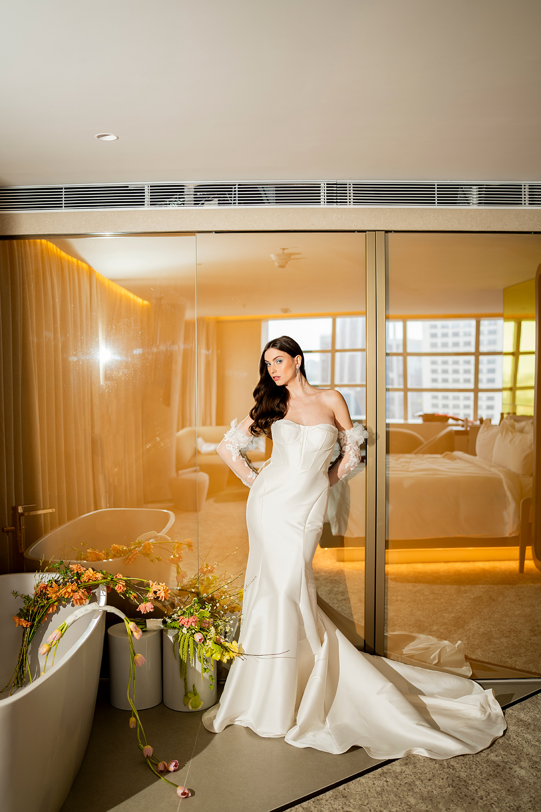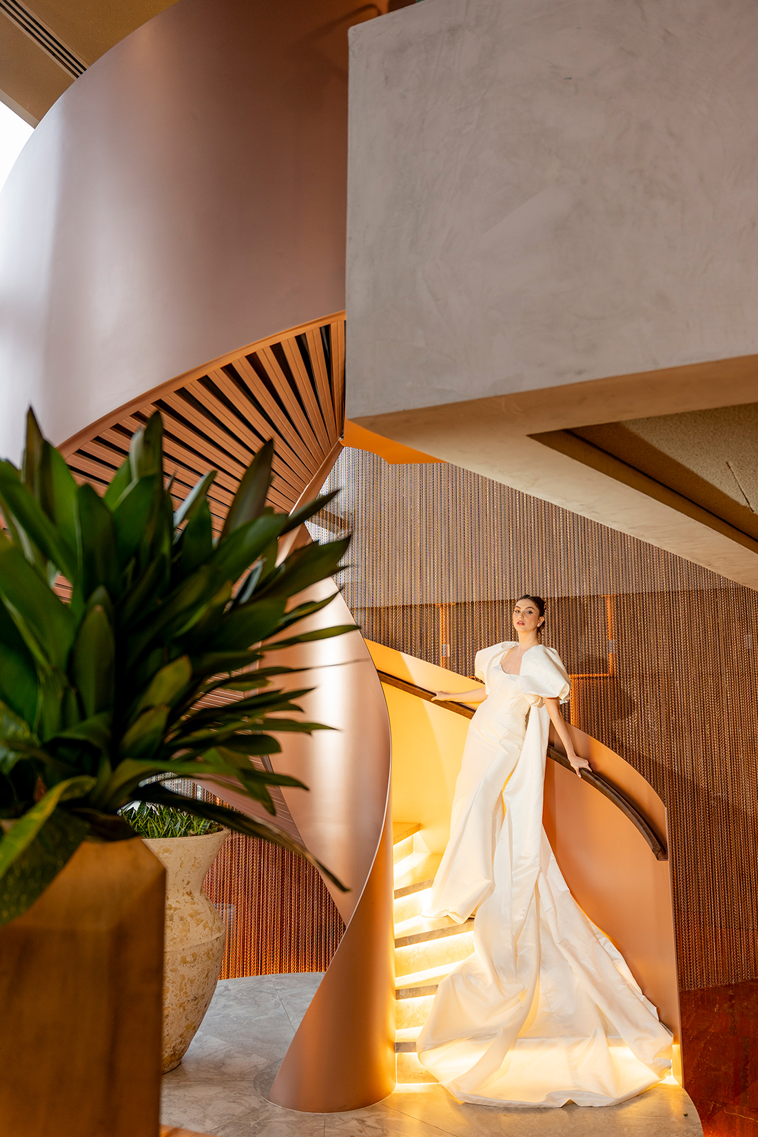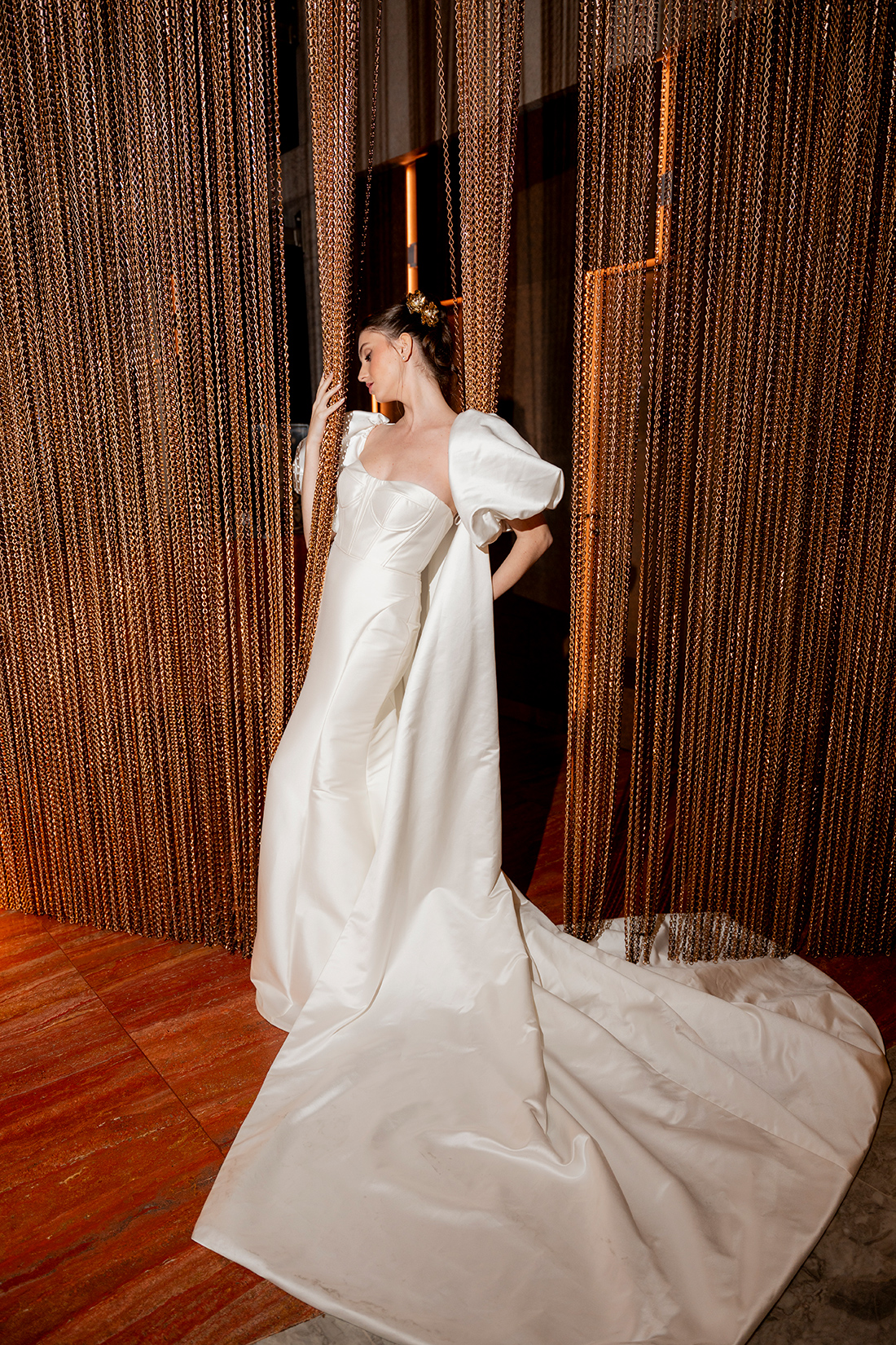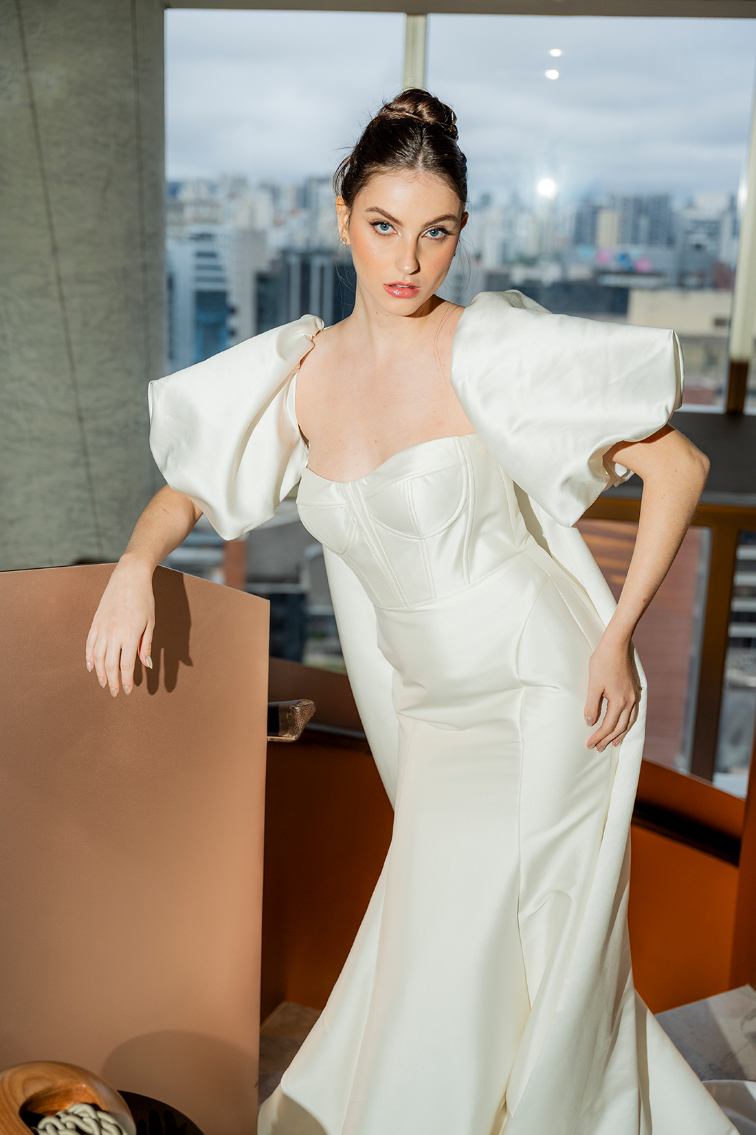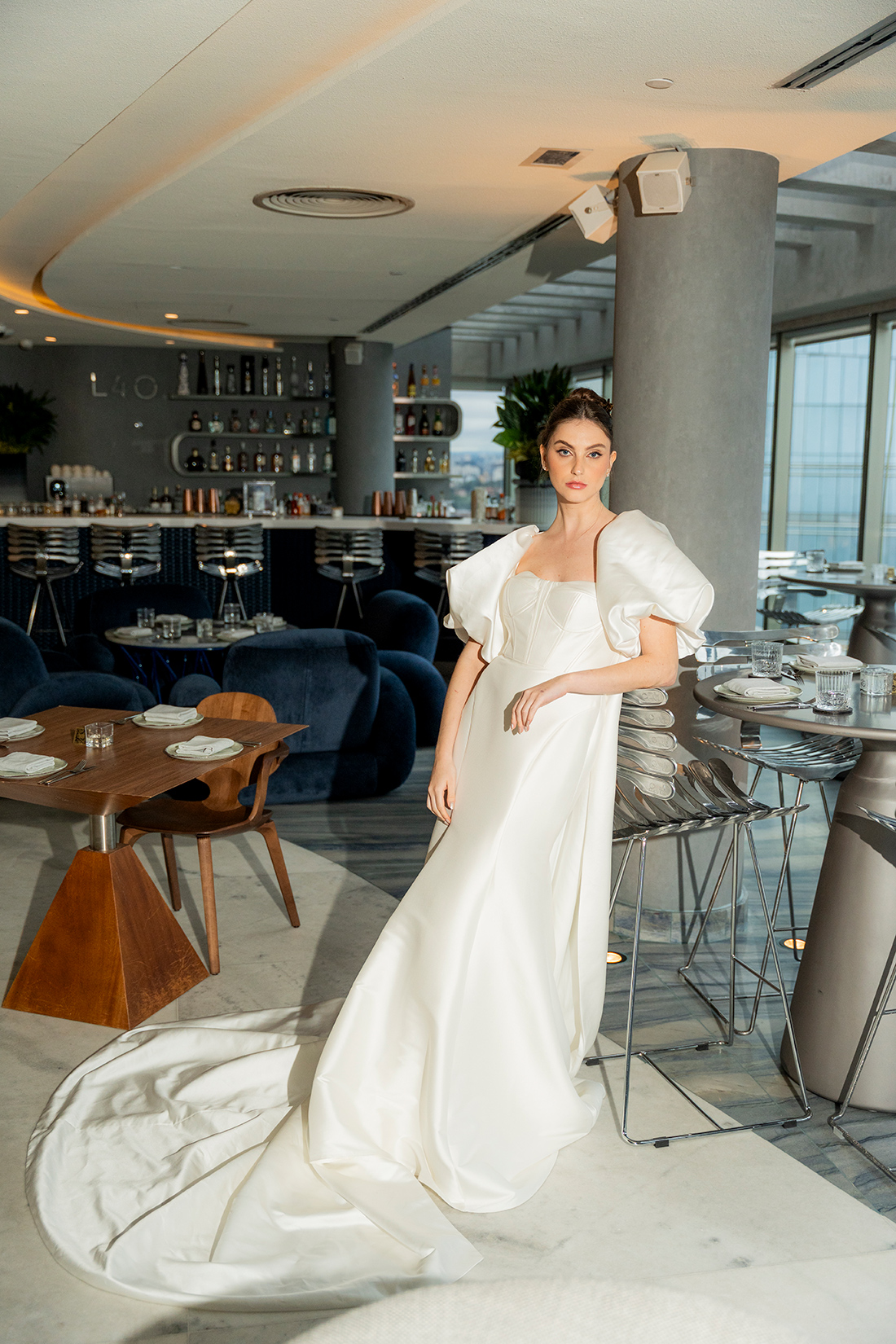 Em um cenário que mistura arquitetura imponente, interiores modernos e uma atmosfera cosmopolita, o ensaio propõe um olhar de moda, mas também aplicável aos casamentos reais.