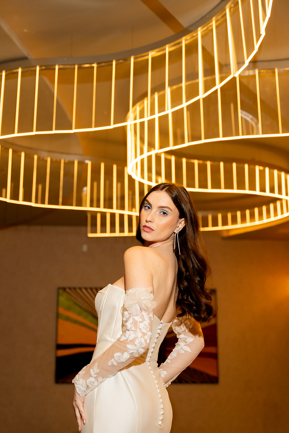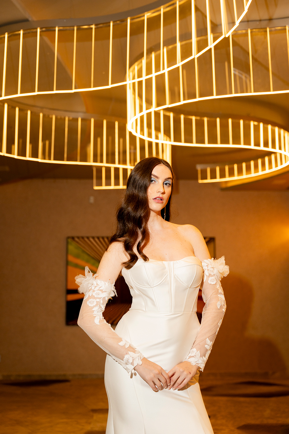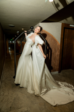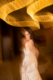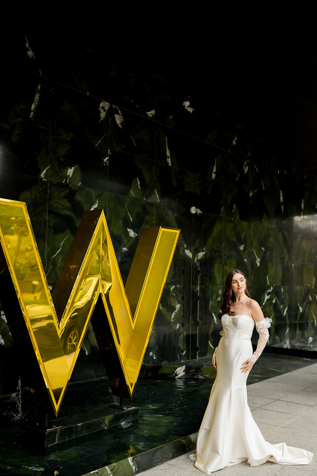 As criações ganharam ainda mais força quando inseridas nos ambientes do W São Paulo, criando um contraste interessante entre a suavidade bridal e a imponência contemporânea do hotel, resultando em imagens sofisticadas e cheias de personalidade.