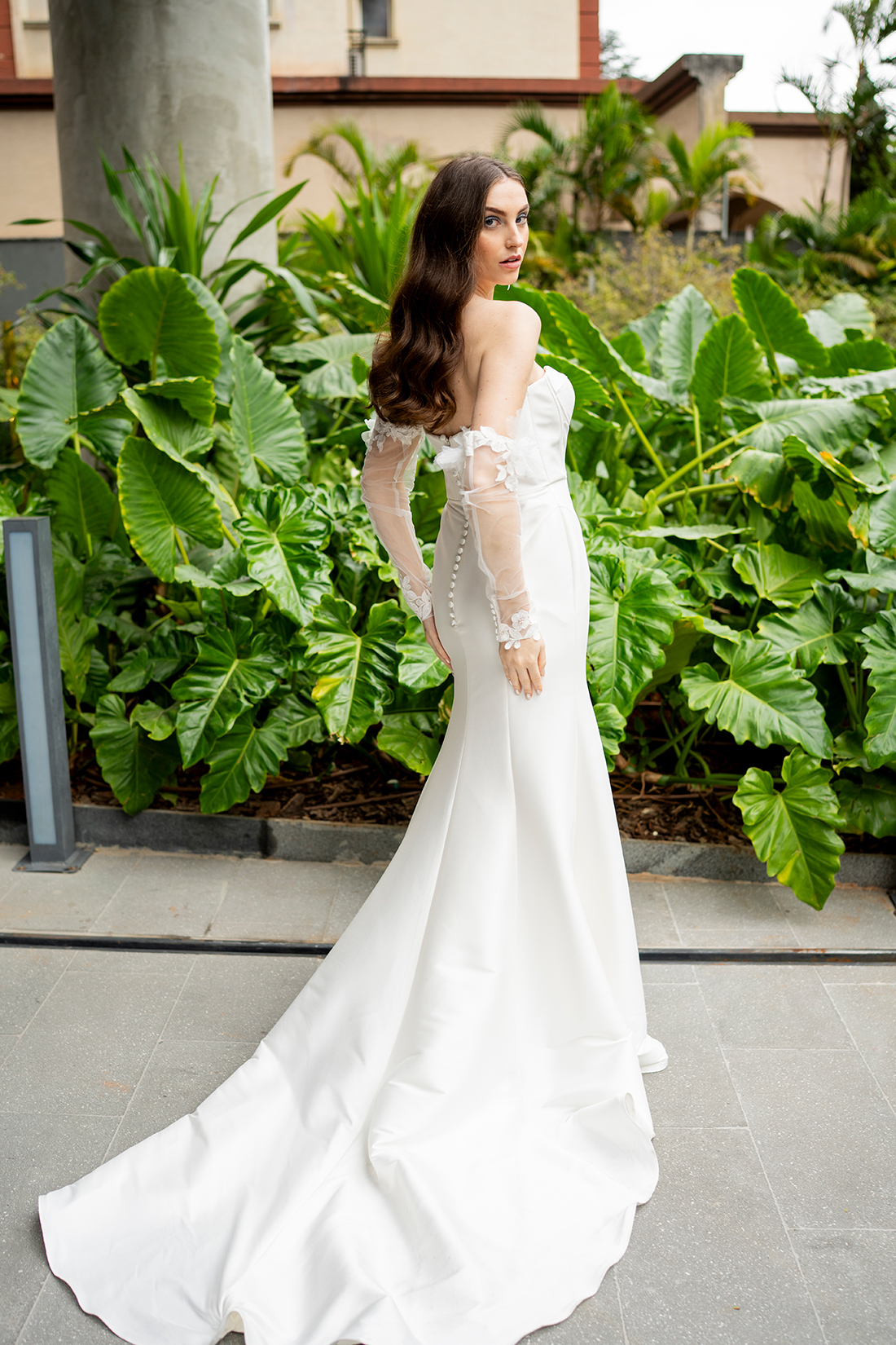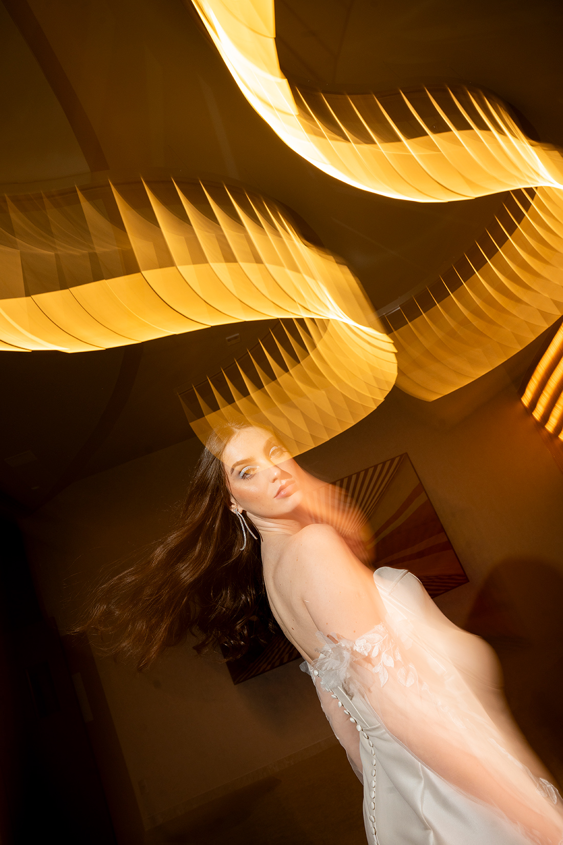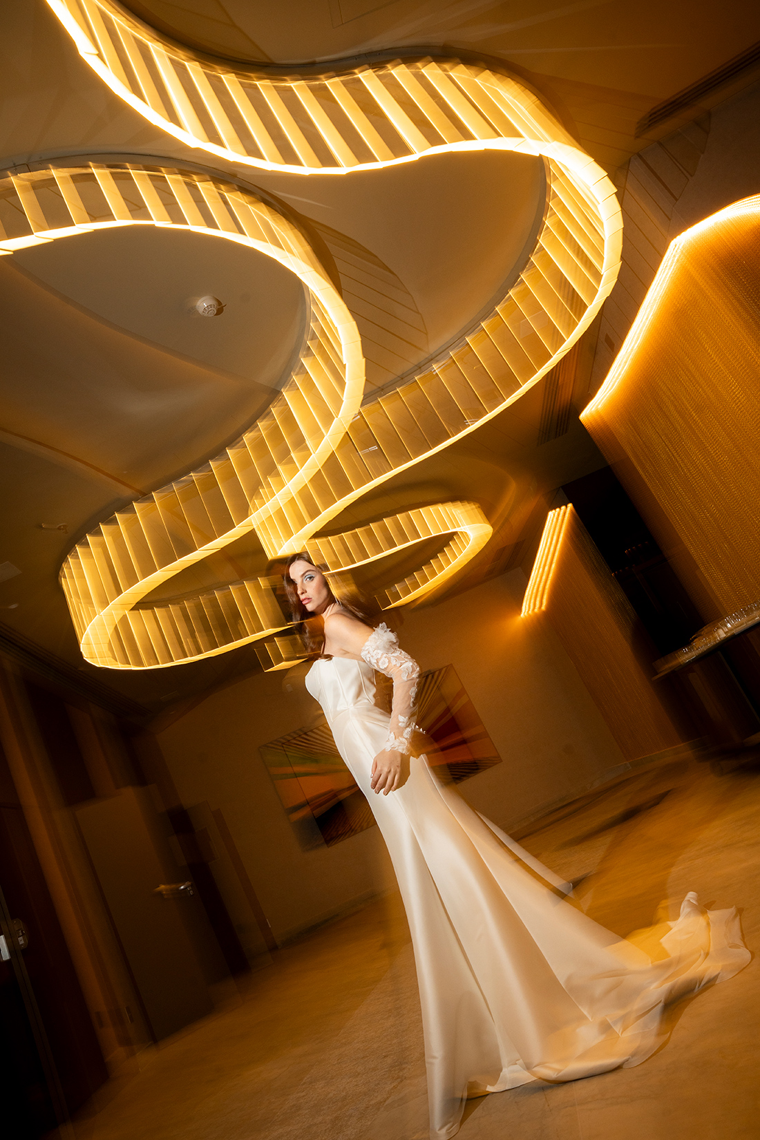 As criações ganharam ainda mais força quando inseridas nos ambientes do W São Paulo, criando um contraste interessante entre a suavidade bridal e a imponência contemporânea do hotel, resultando em imagens sofisticadas e cheias de personalidade.