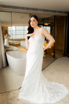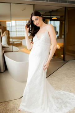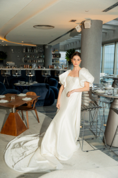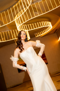 Essa noiva transita com naturalidade entre o fashionista e o elegante. Ela aprecia tendências, mas escolhe o que faz sentido para sua identidade. Seus vestidos apresentam cortes limpos, tecidos nobres e detalhes estratégicos, equilibrando ousadia e refinamento.