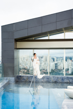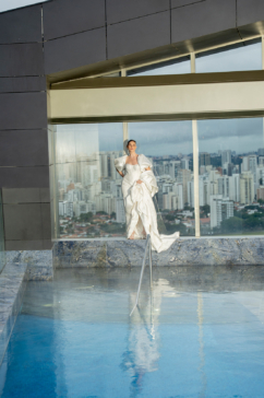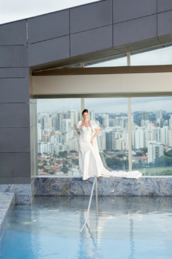 A produção bridal aconteceu ano passado e teve como pano de fundo o icônico W São Paulo. Em resumo, os cliques traduzem a união precisa entre arquitetura contemporânea, moda nupcial e linguagem visual atual.