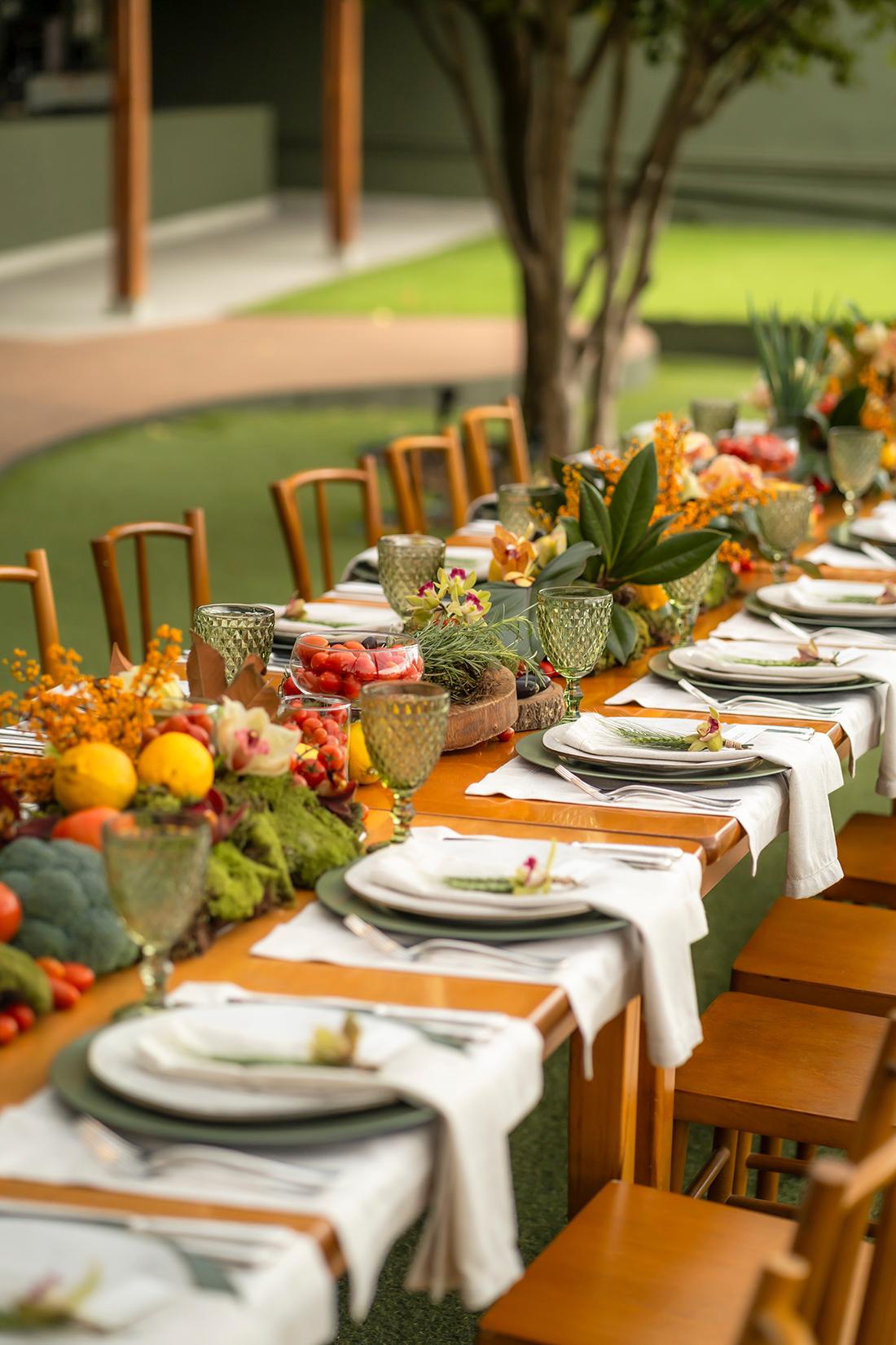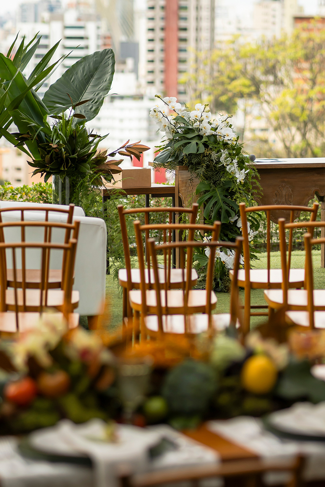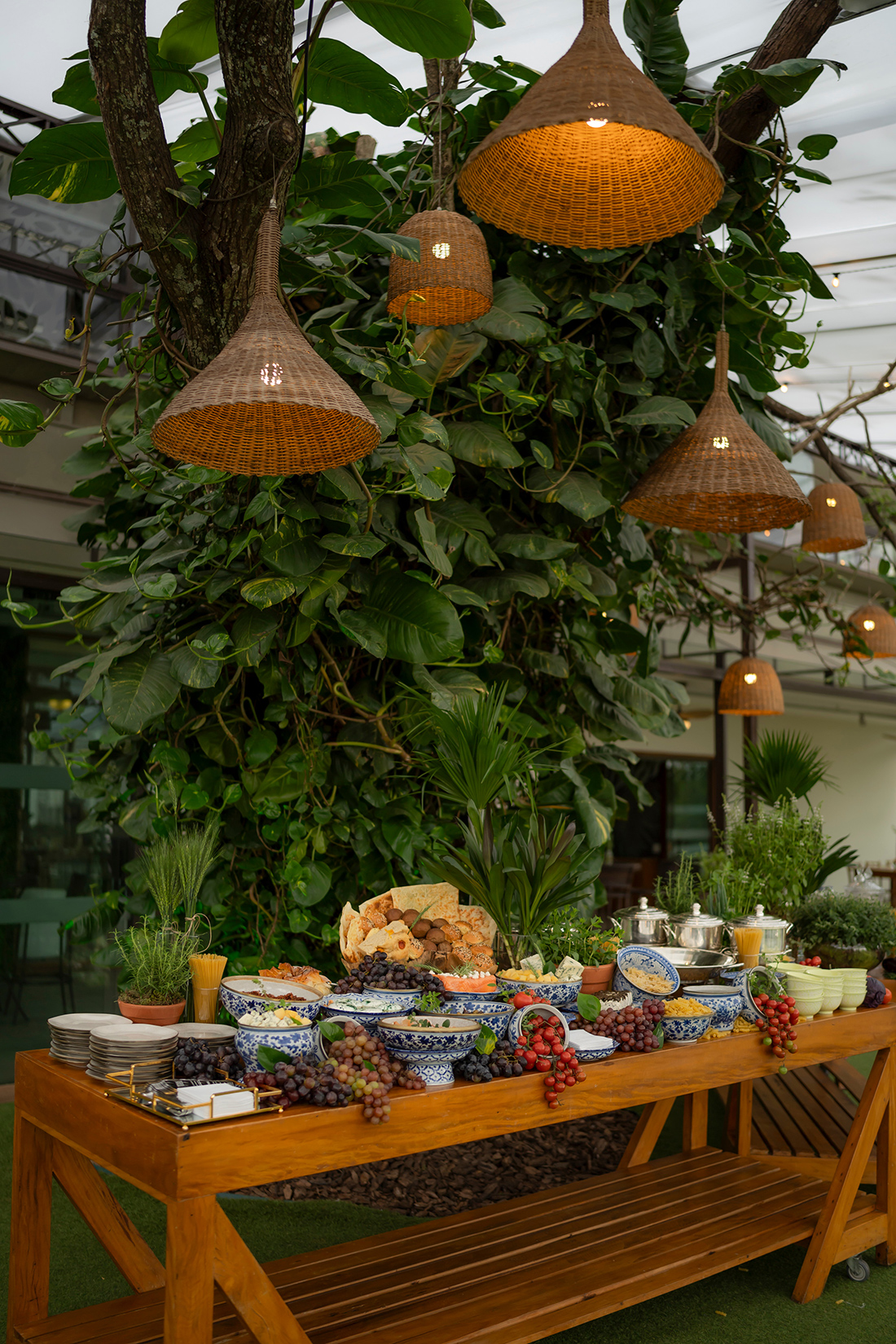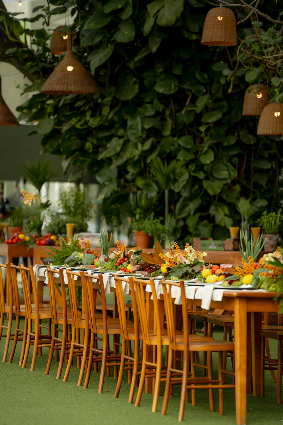 A vista surpreendente do espaço emoldurou as fotos e vídeos. Já a decoração ganhou cores neutras e detalhes botânicos, incluindo frutas e legumes em uma proposta surpreendente, leve e atual.