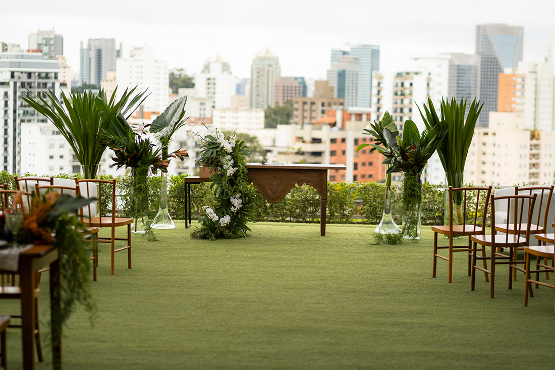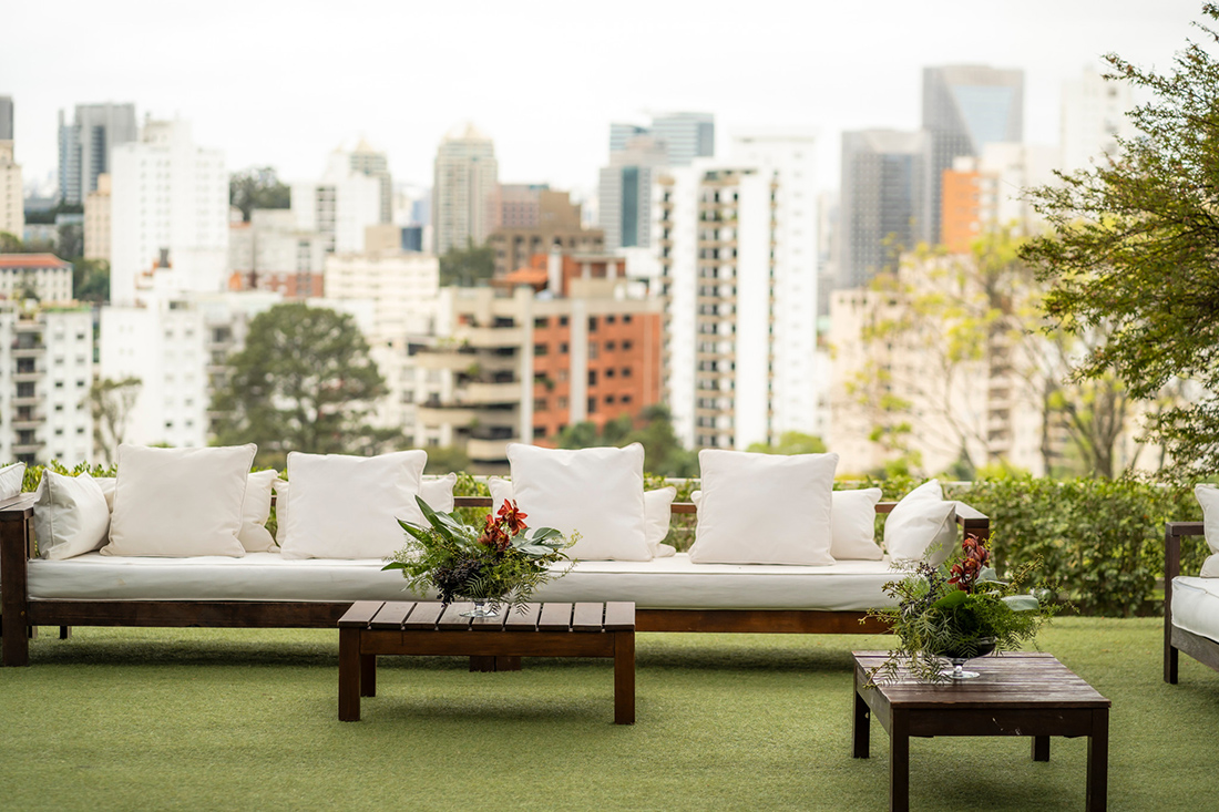 Para a oficialização dessa união, Ro e Fe escolheram o jardim aconchegante e a vista sem igual da Cosy.