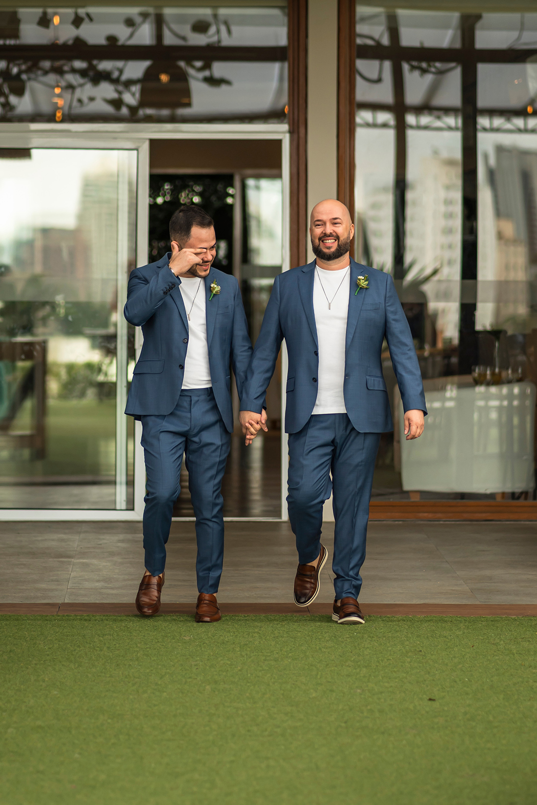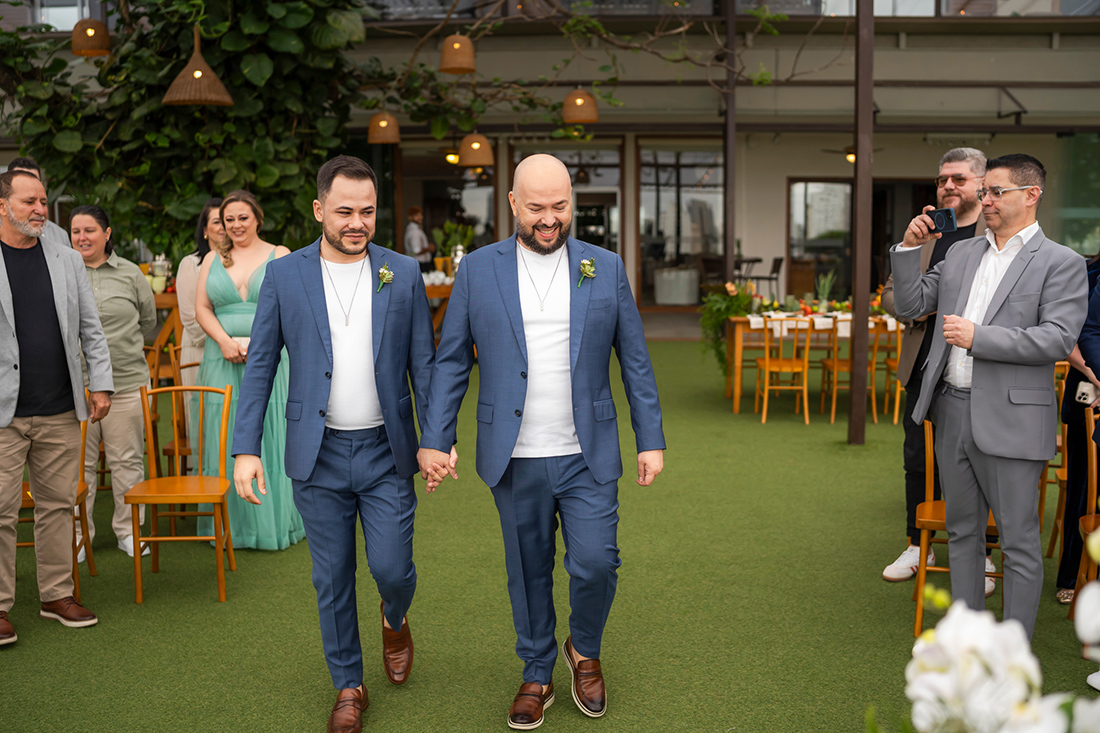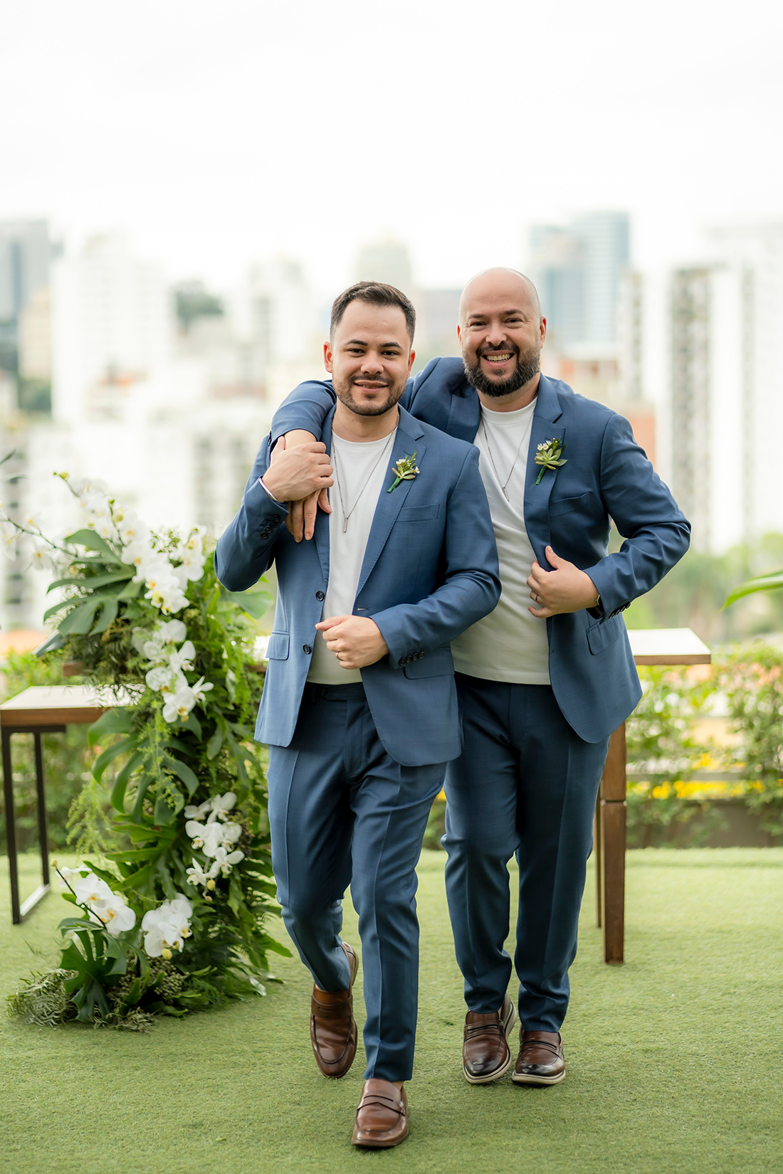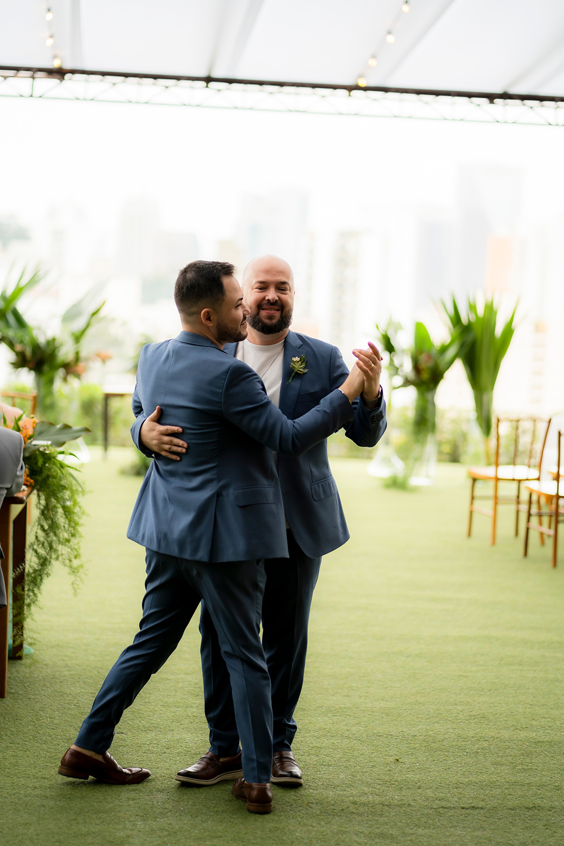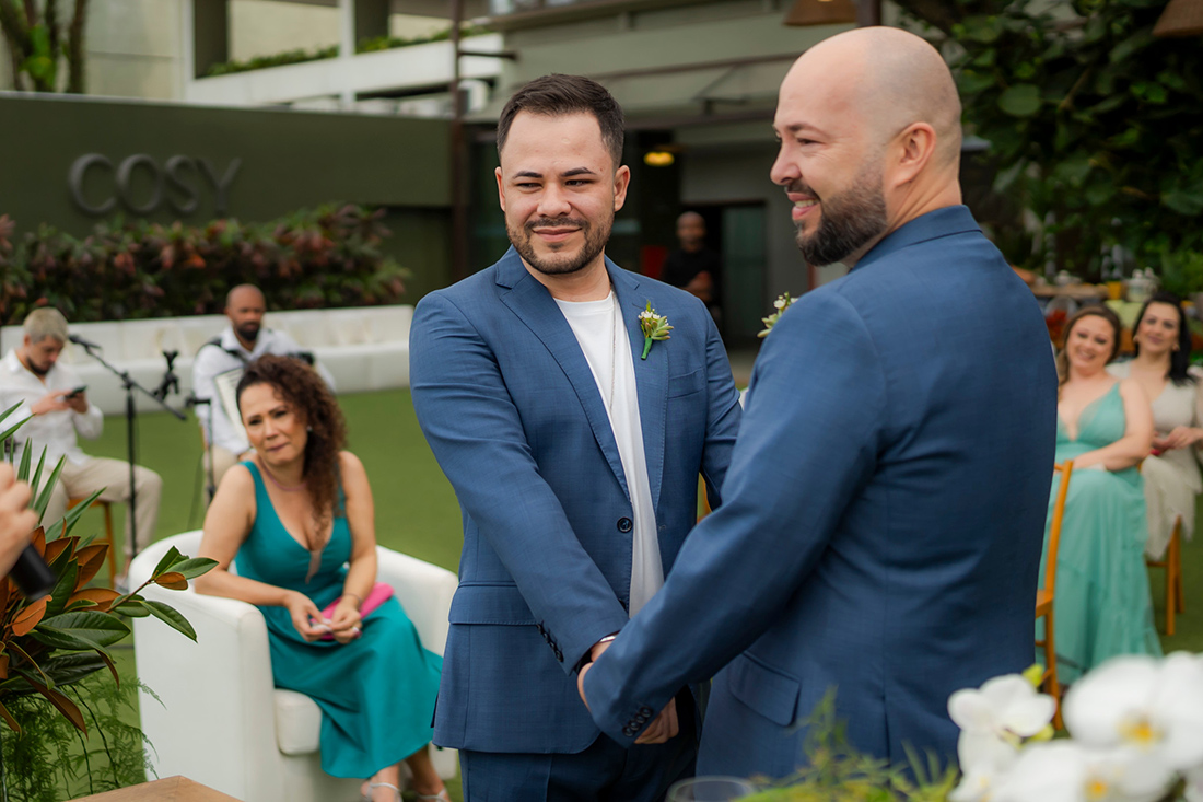 Ao final da cerimônia, não faltaram sorrisos, lágrimas e abraços. A experiência de anos organizando casamentos alheios fez com que Roberto e Felipe aproveitassem cada minuto do seu próprio dia.