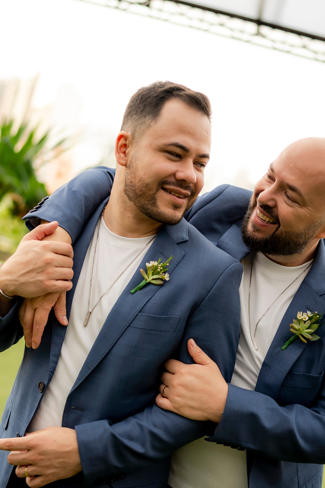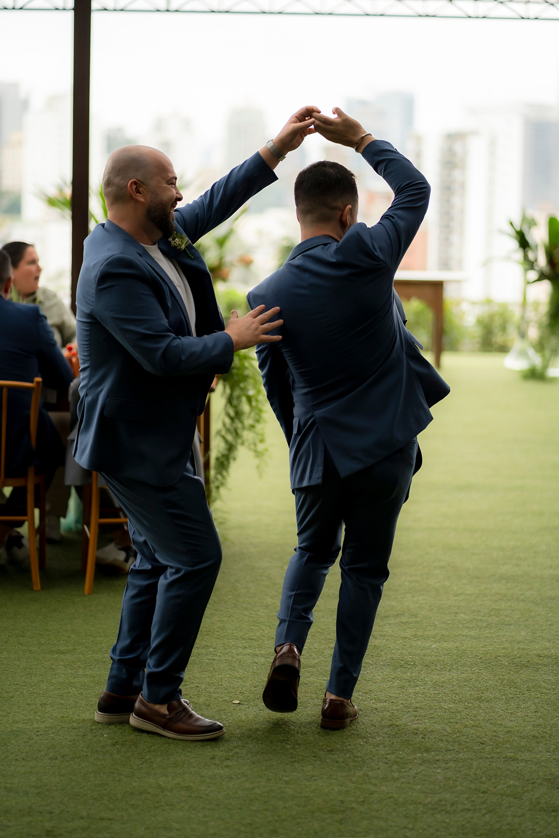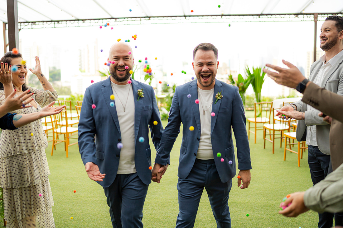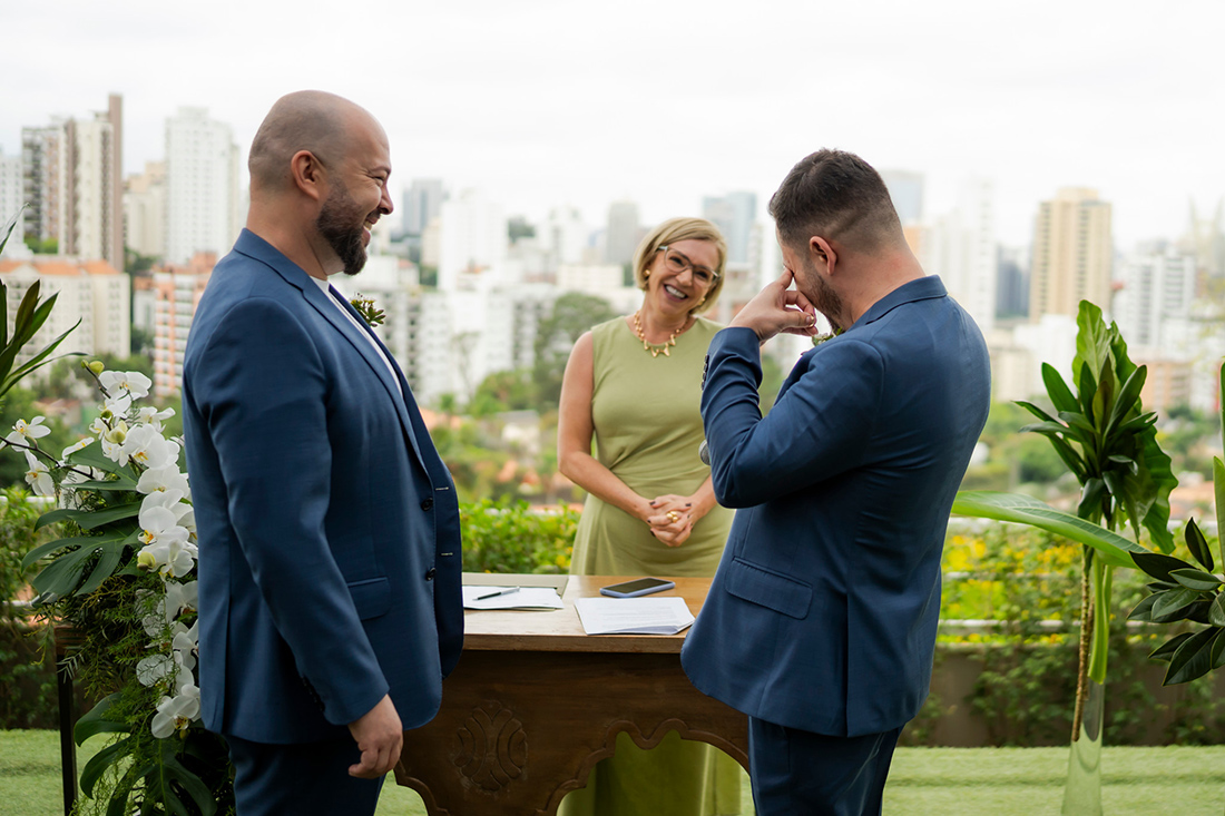 Ao final da cerimônia, não faltaram sorrisos, lágrimas e abraços. A experiência de anos organizando casamentos alheios fez com que Roberto e Felipe aproveitassem cada minuto do seu próprio dia.