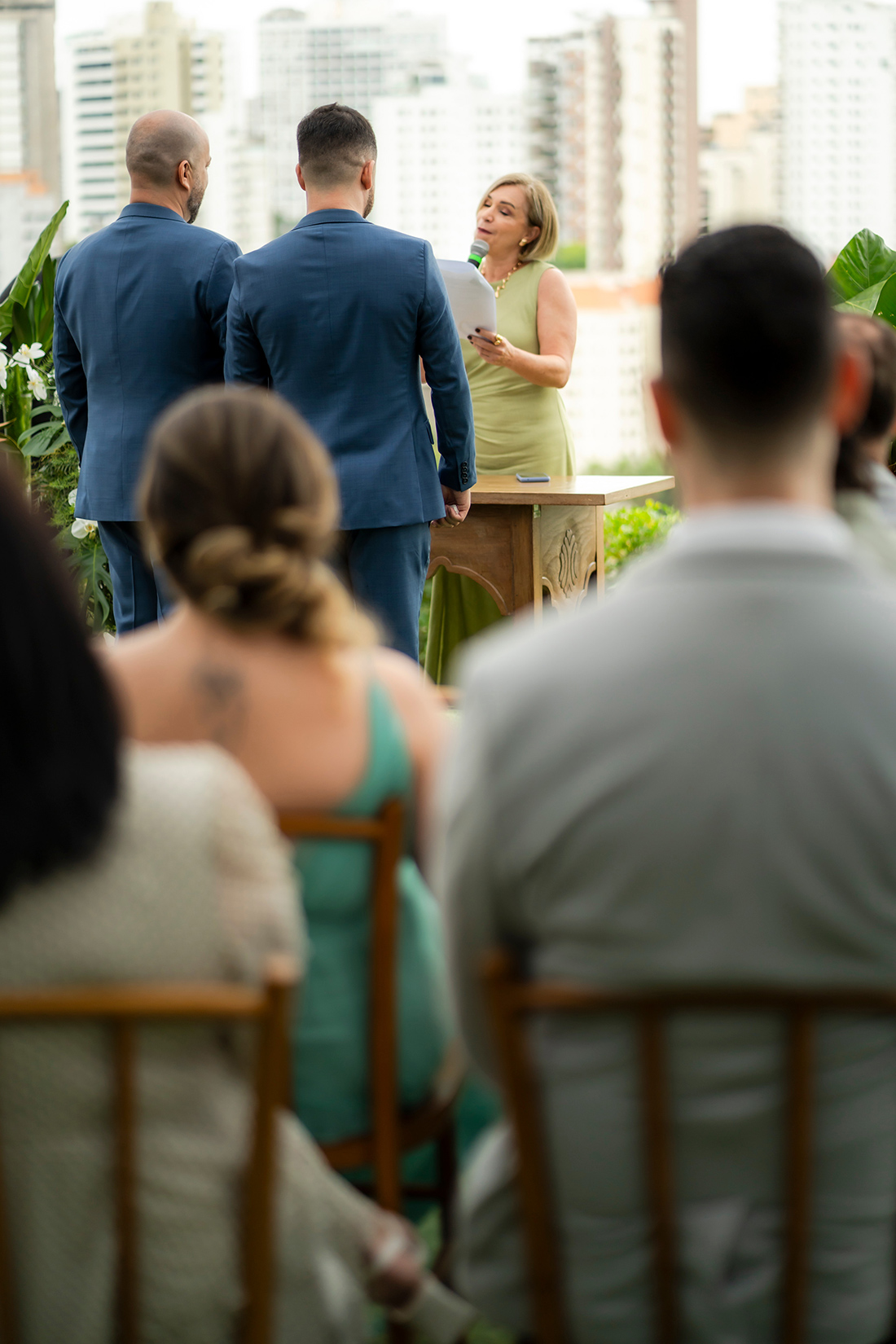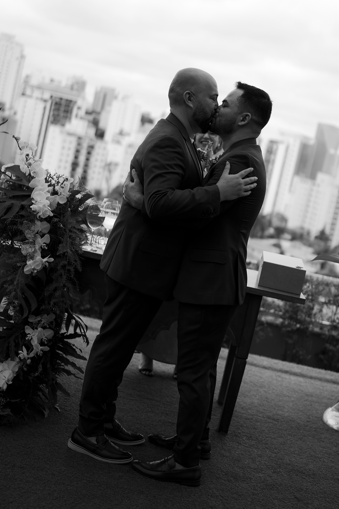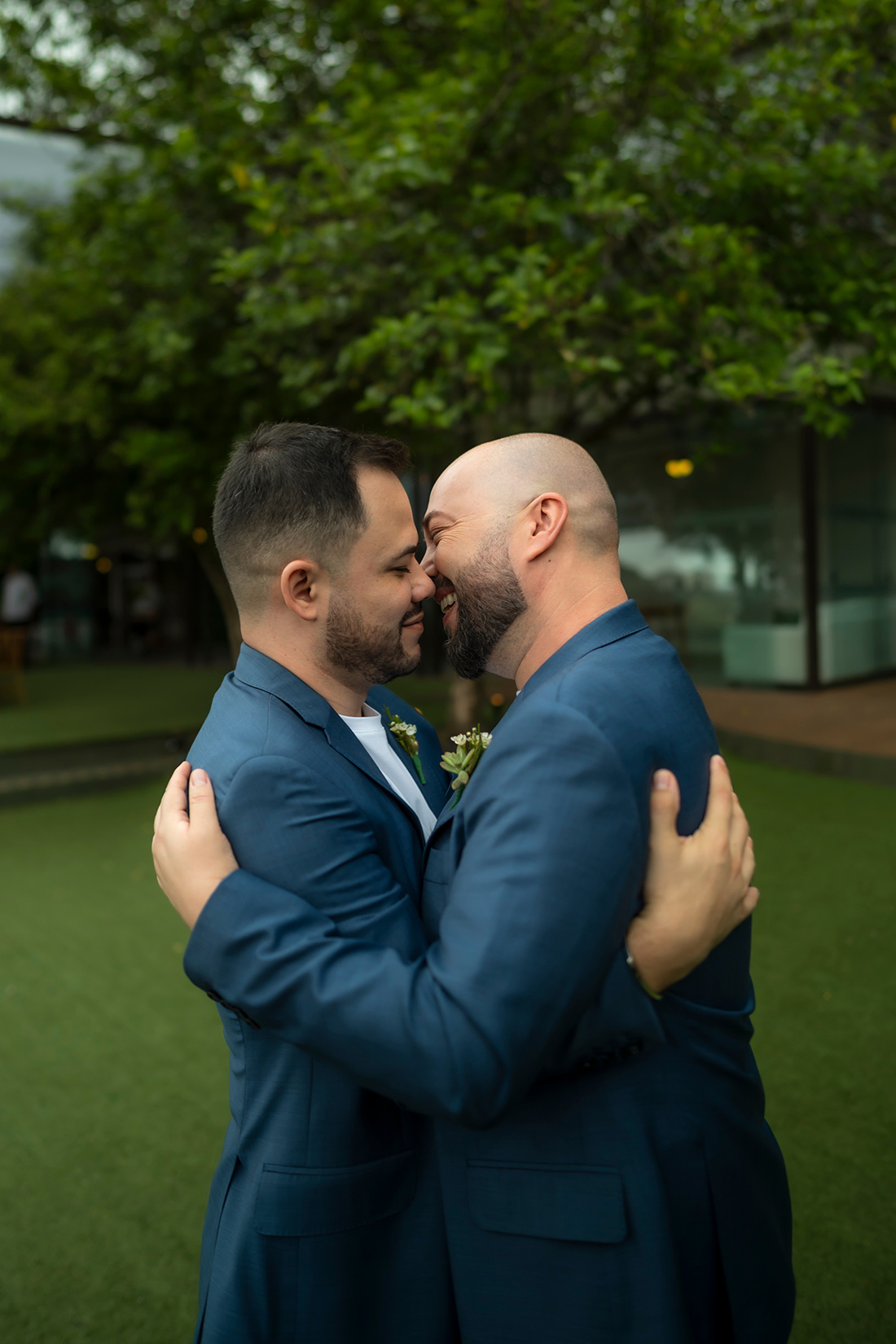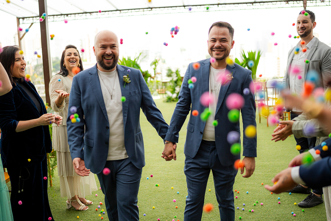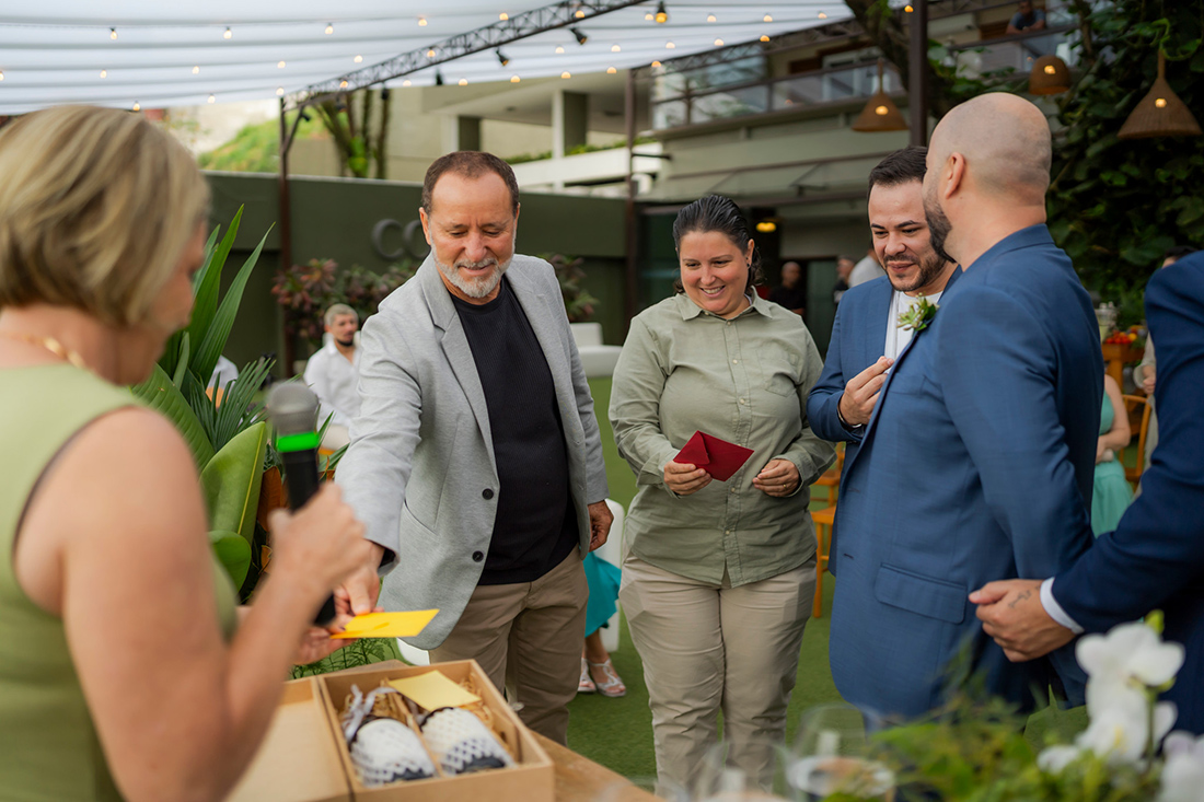 Ao final da cerimônia, não faltaram sorrisos, lágrimas e abraços. A experiência de anos organizando casamentos alheios fez com que Roberto e Felipe aproveitassem cada minuto do seu próprio dia.