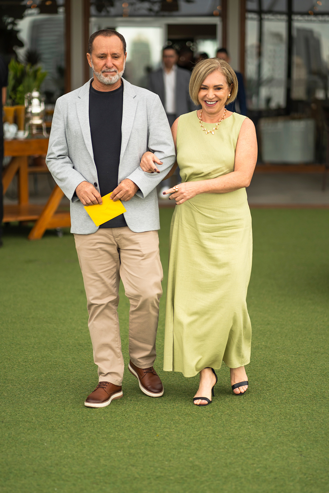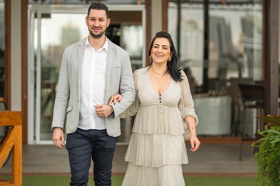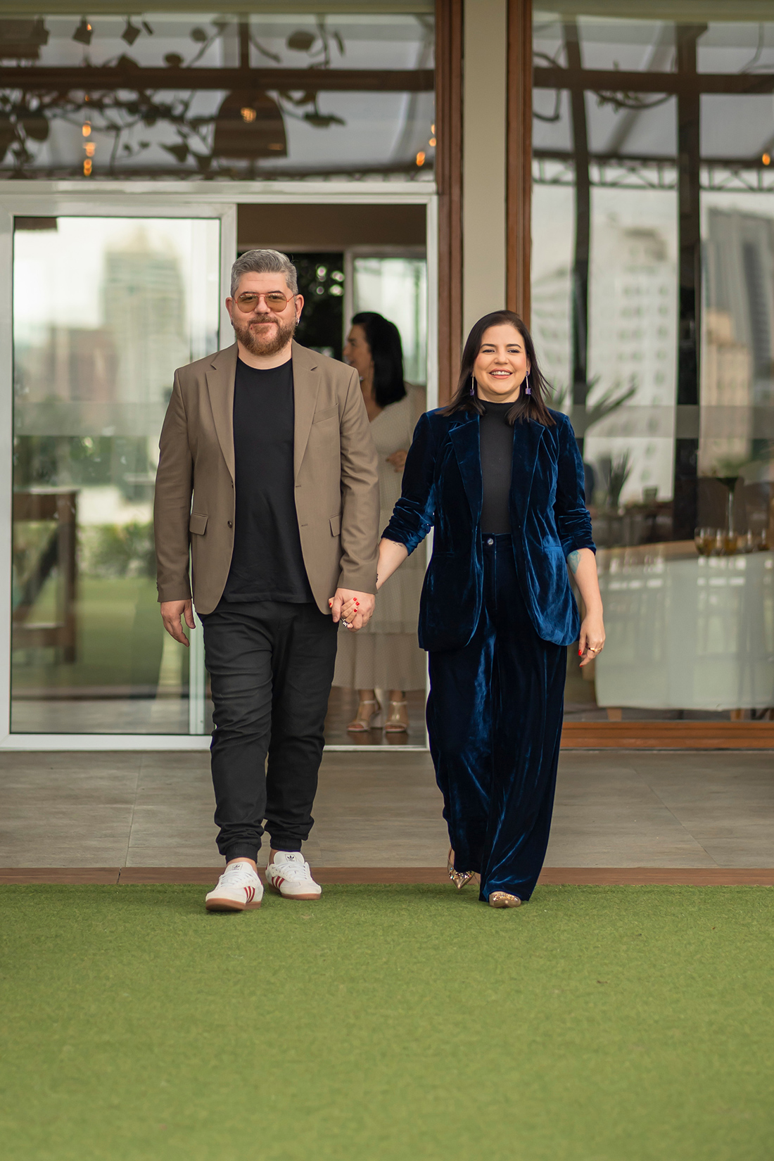Para os looks, como ambos têm expertise em eventos, priorizaram conforto e estilo para aproveitar cada minuto.