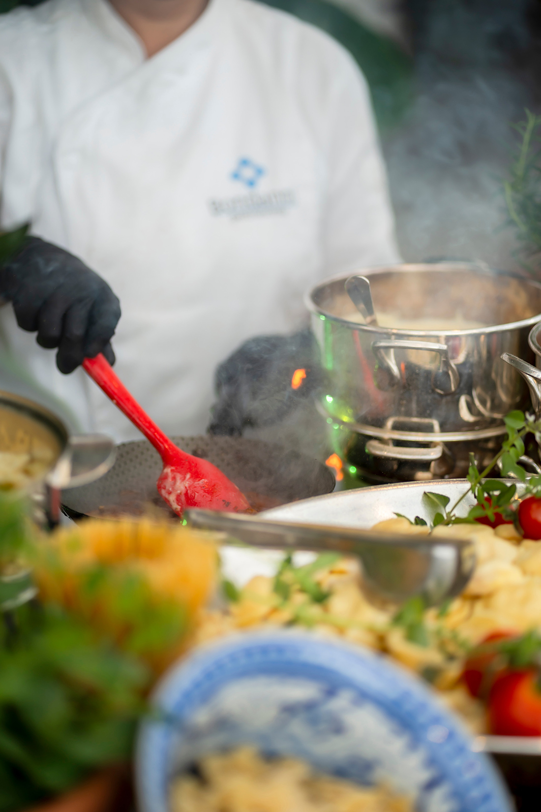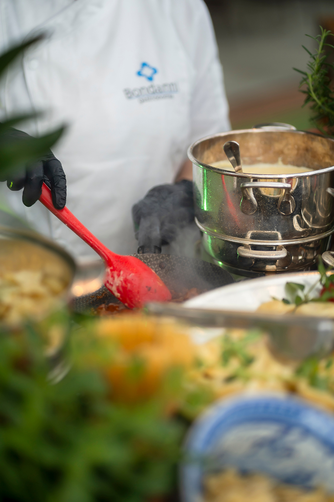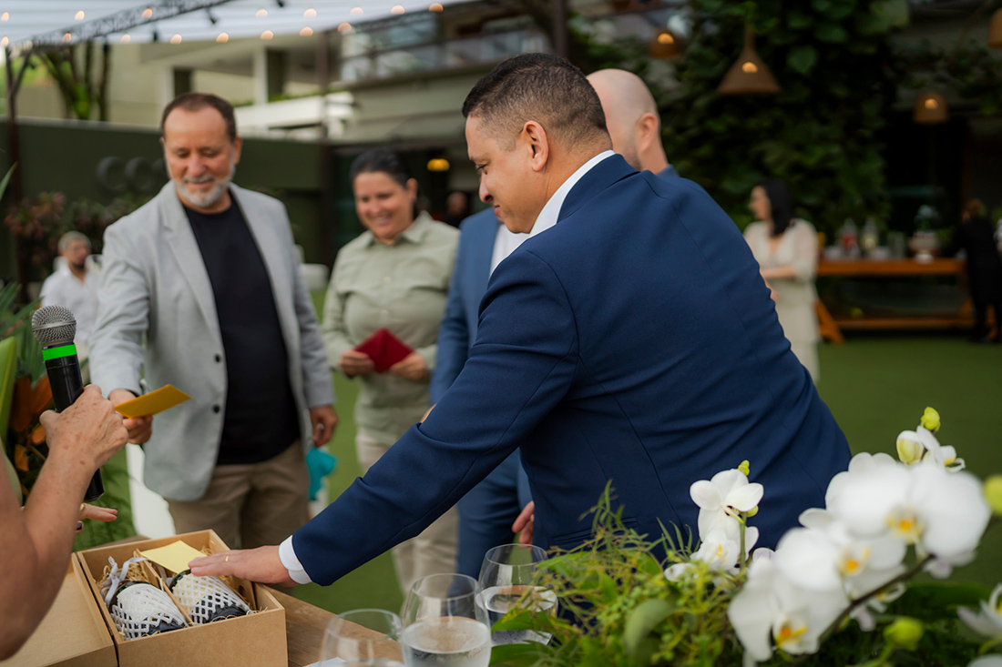 Para que a celebração refletisse sua personalidade, Roberto e Felipe optaram por total liberdade na escolha dos fornecedores. Isso só é possível graças à infraestrutura impecável da Cosy, com cozinha equipada, gerador e outras facilidades.