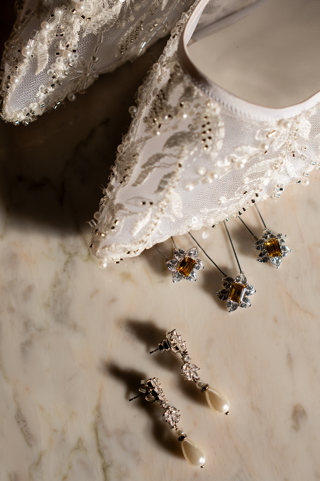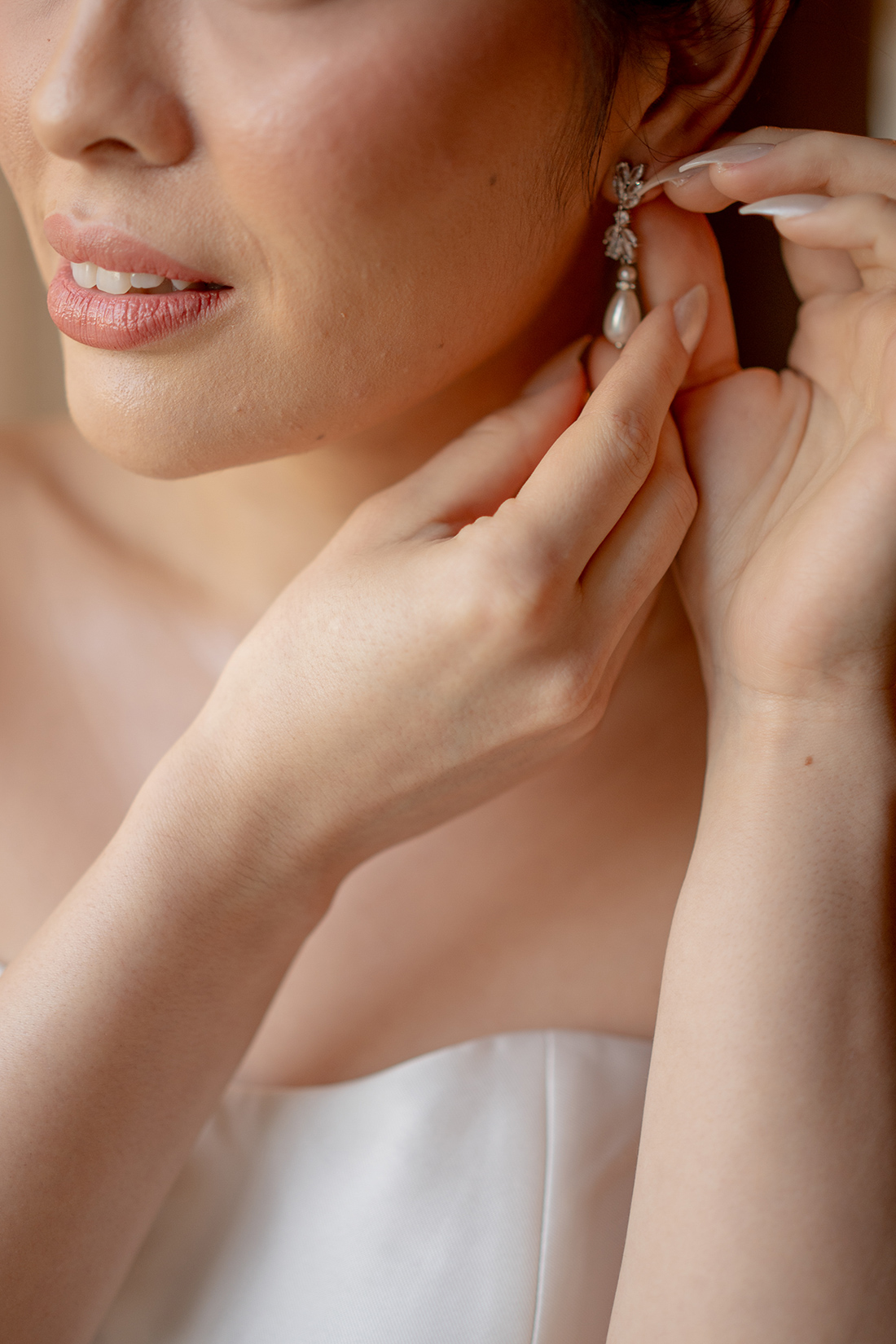 Os acessórios da Alessandra Cazzaro complementaram o look com delicadeza, sem competir com o vestido. Esse equilíbrio é essencial, principalmente em propostas mais minimalistas.
