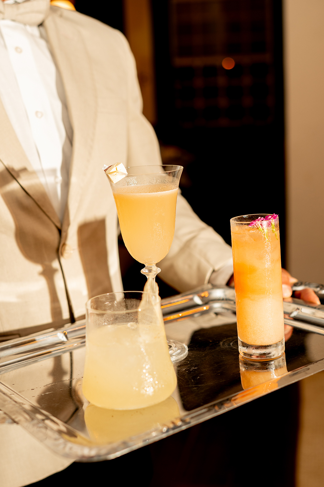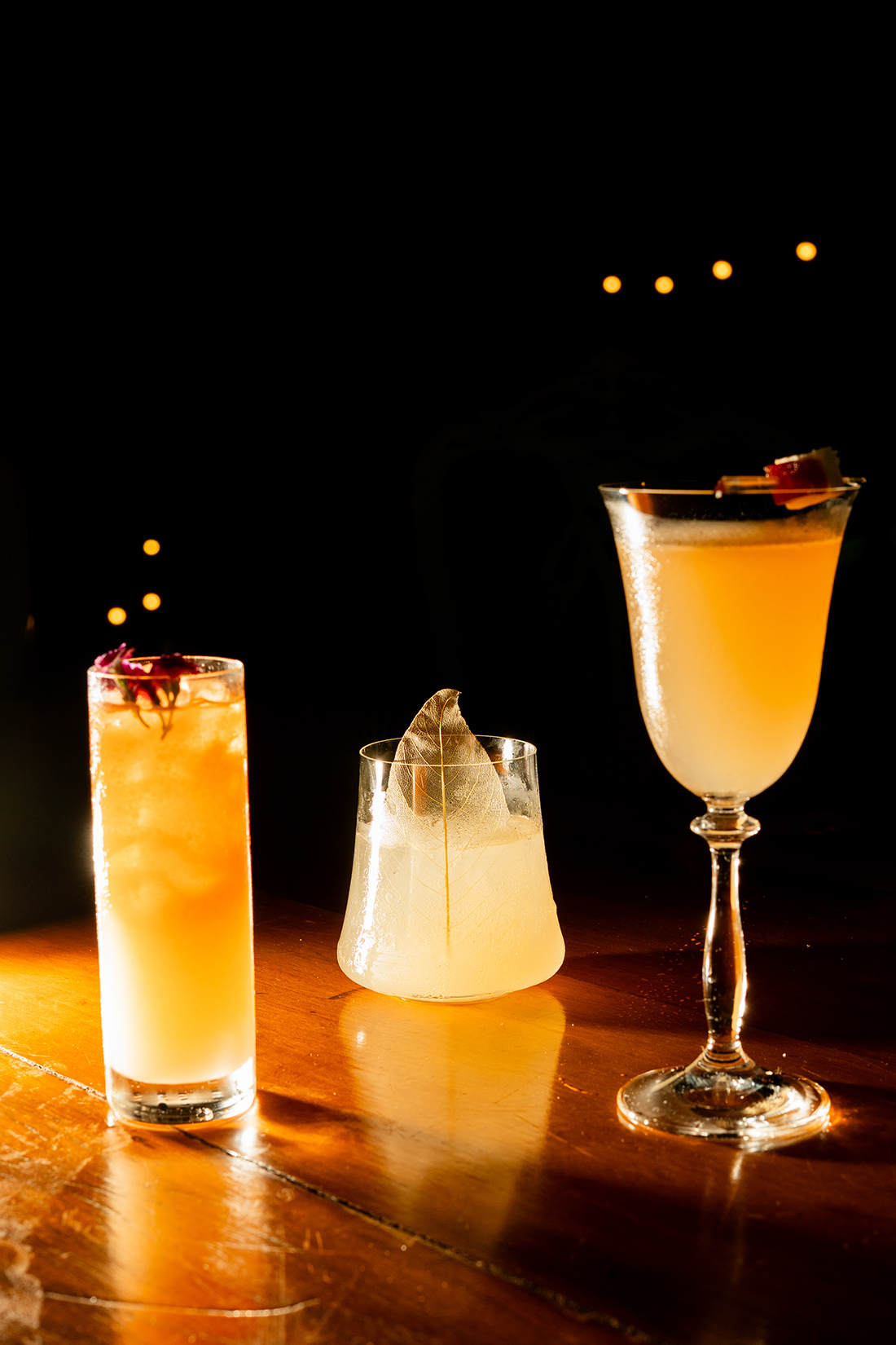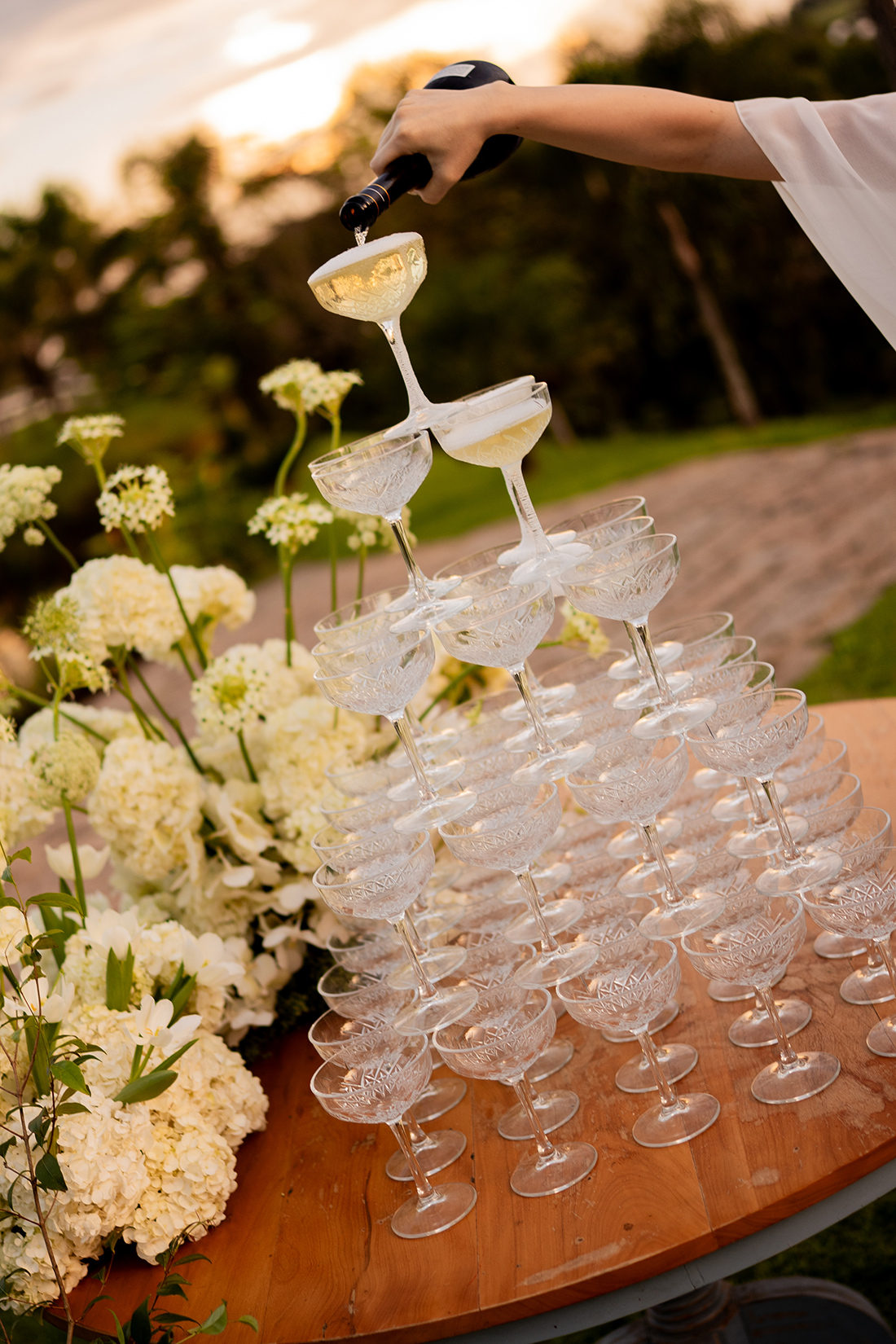 A torre de taças, criada pela Vegas Bartenders com espumante JMatos, é um daqueles elementos que encantam imediatamente.
