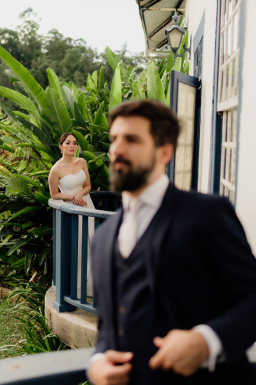 A Fazenda da Mata foi a escolha perfeita para dar vida ao conceito do editorial. Com áreas verdes exuberantes, arquitetura charmosa e uma atmosfera acolhedora, o espaço traduz exatamente o que muitos casais buscam hoje. Ou seja, um casamento ao ar livre, elegante, mas sem excessos.