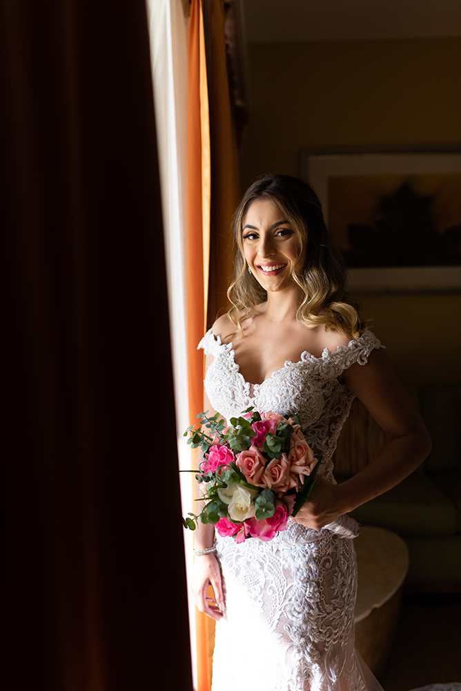Começamos a pesquisar lugares no Brasil, e quando fui ver os valores, percebi que o casamento sairia muito mais caro do que imaginava. Foi então que marcamos a reunião com a Graci Carvalho Assessoria. Antes da reunião, comecei a pesquisar outros estilos de casamento, e como queríamos fazer a nossa lua de mel em Punta Cana, me veio a ideia: por que não casar em Punta?