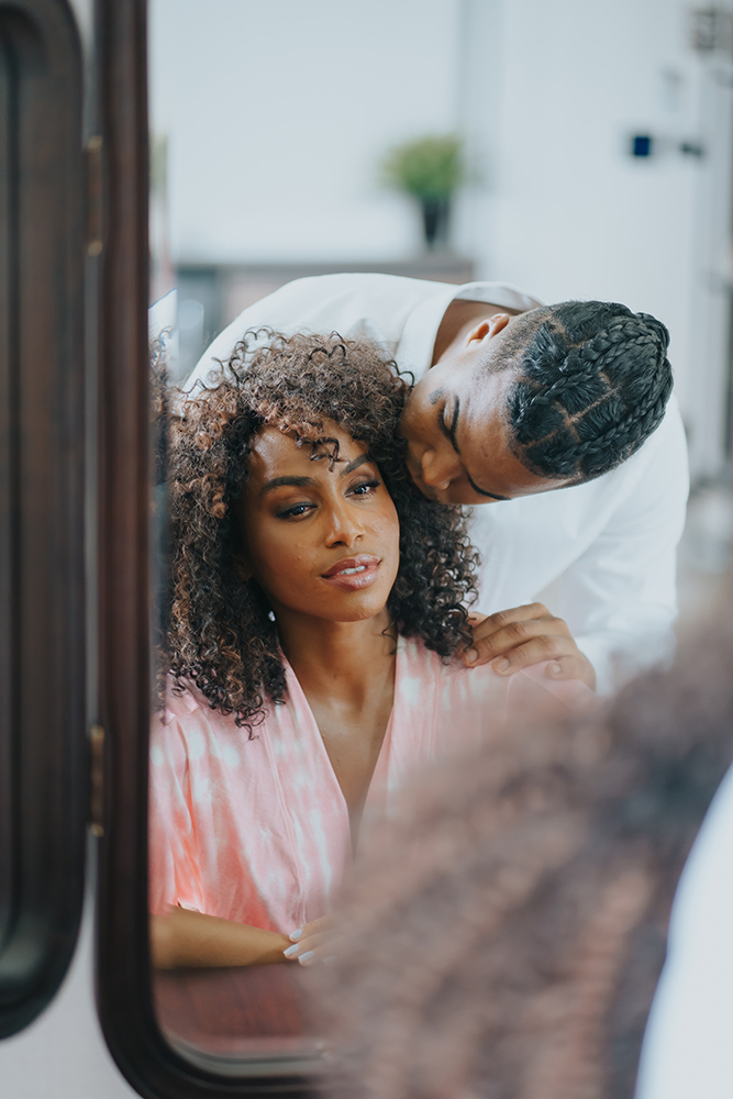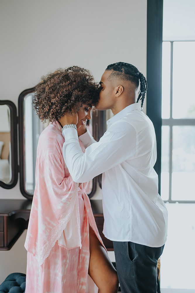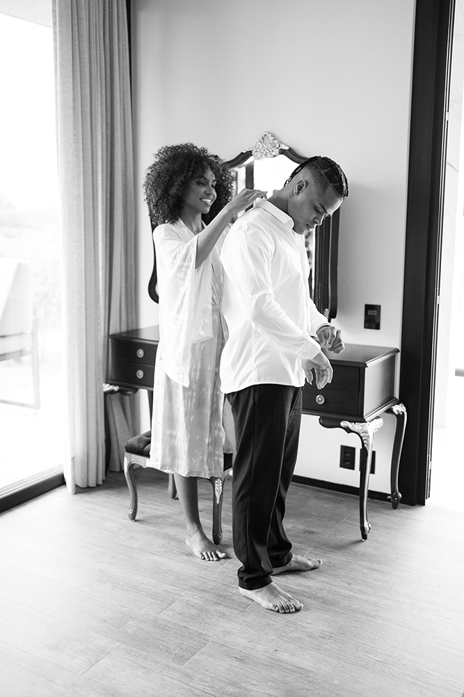 O making of, por exemplo, traz os noivos se preparando juntos. Ela abotoando a camisa dele, ele ajudando a colocar os brincos nela. Um amor maduro e, ainda assim, hipnotizado. Uma história de cumplicidade e parceria, exatamente como acontece na vida da Sâmela e do Levi.
