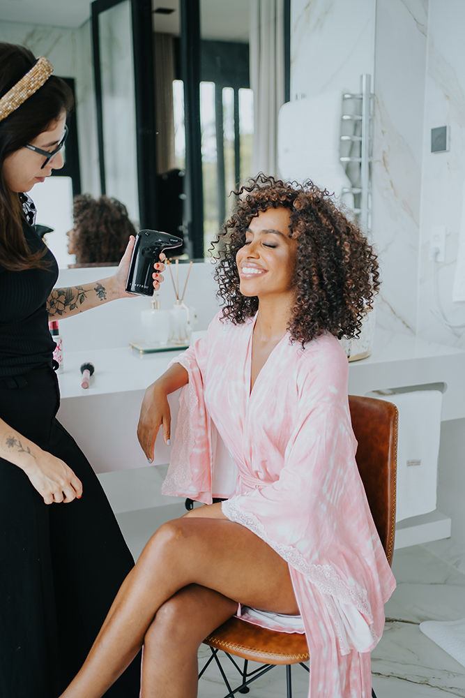 O arremate ficou por conta dos acessórios Alessandra Cazzaro, que realçaram ainda mais a beleza assinada por Mazy Tuon e Larissa Ramos. Mazy caprichou na make, trazendo uma pele de boneca.