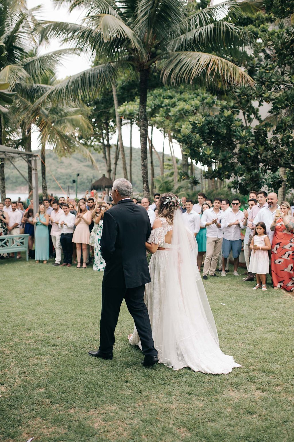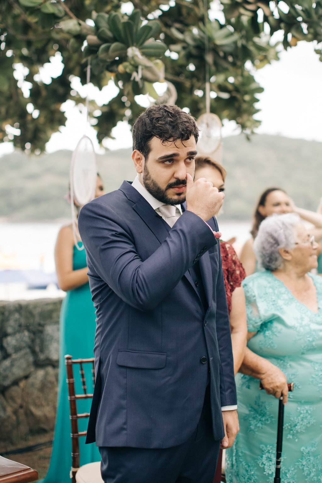 O pai do Marcel faleceu alguns anos atrás, por isso fiz uma surpresa colocando a foto dele no altar. Momento emocionante… Os votos, nossa, ele me surpreendeu!