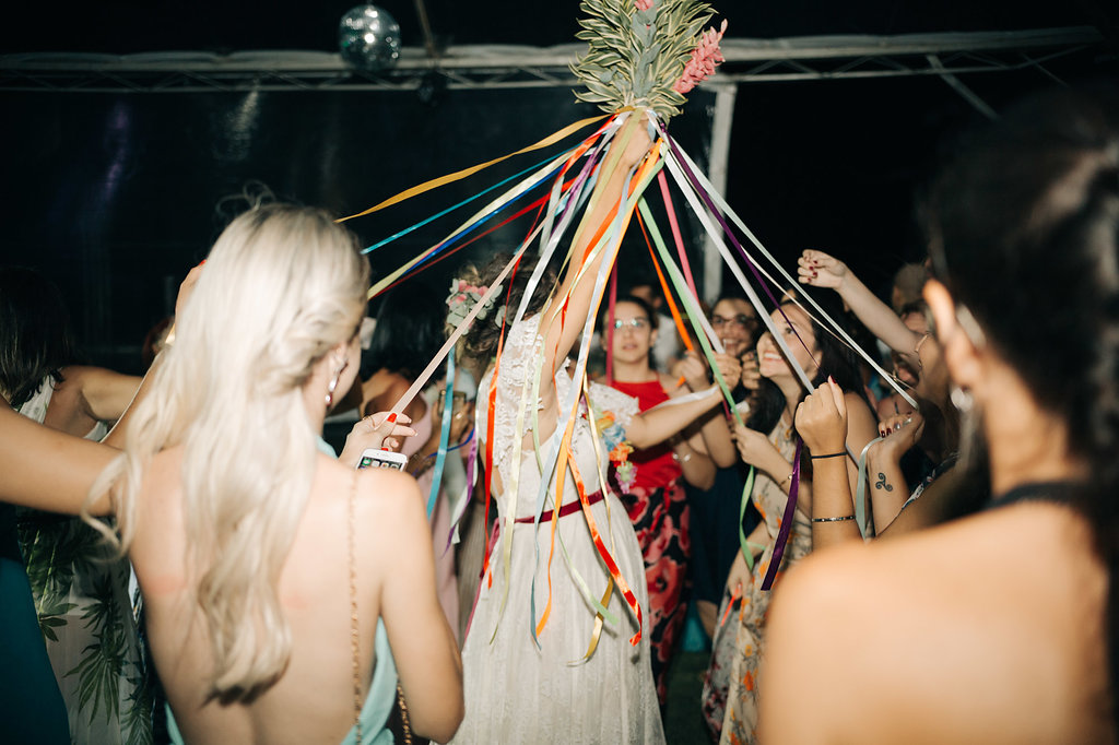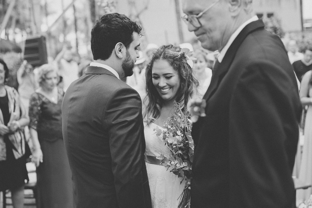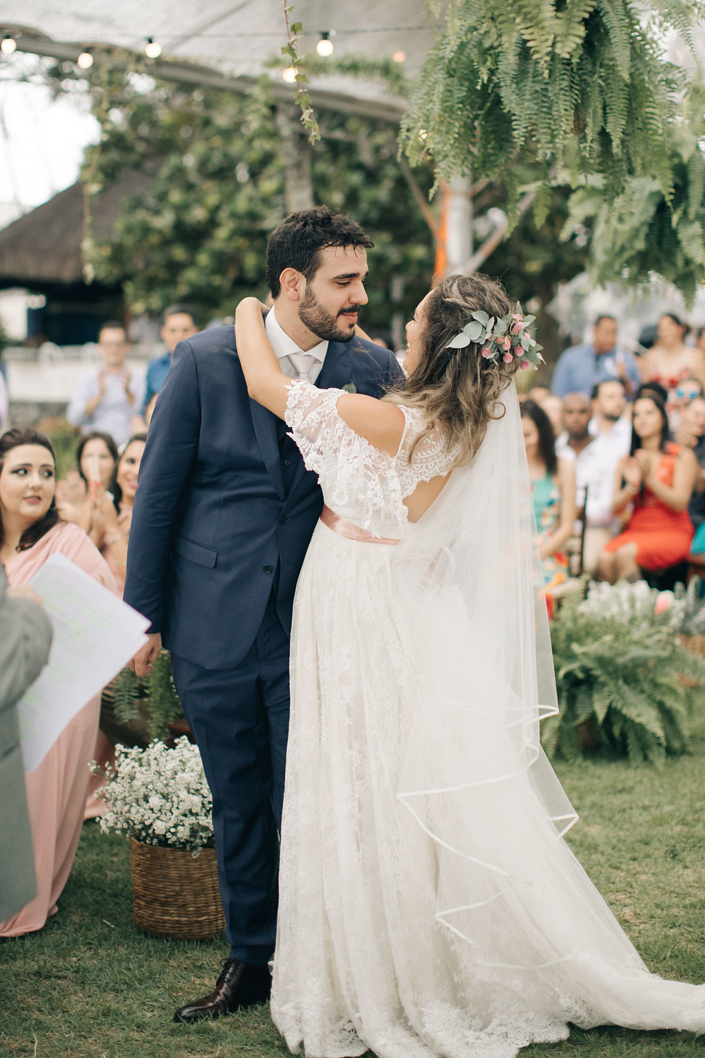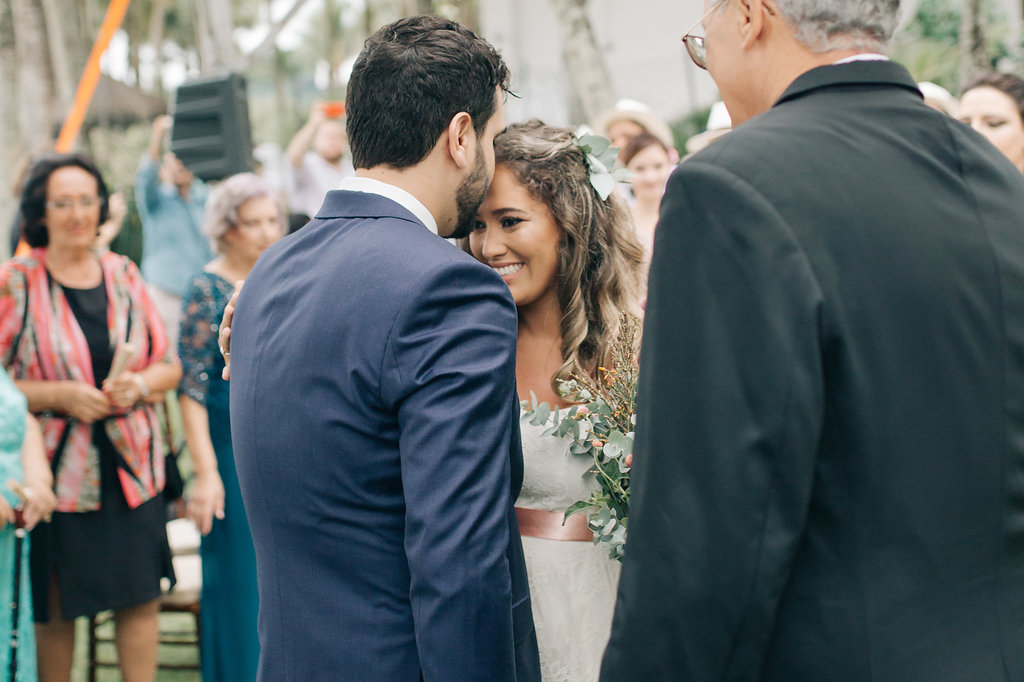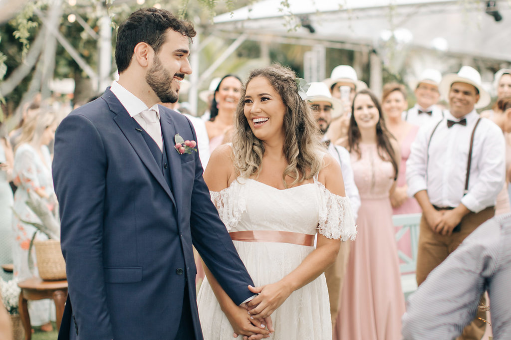 Música da cerimônia: Renata Queli • Mobiliário: Márcia Locações • Fotografia: Aloha Fotografia • Decoração, acessório da noiva, lapelas e buquê: Violeta Decorações • Local: Casa de Veraneio – Alto Mar Imóveis • Vestido de noiva: Pó de Arroz • Sapato da noiva: Schurtz • Beleza da noiva: Ateliê Alexandra Bombonato • Traje do noivo: Ricardo Almeida • Celebrante: Jorge Fabbro • Identidade visual e convites: Good Mood Produções • Lembrancinhas: Dom Bosco • Bolo, bem casados e doces: La Passione Doces • Buffet: Santa Especiaria • DJ e banda: Carol ao Leo • Vídeo: Anne Filmes • Assessoria: Erika Moreira e Isabela Fernandes • Lista de presentes: Fast Shop e Tok Stok • Iluminação: Dollar