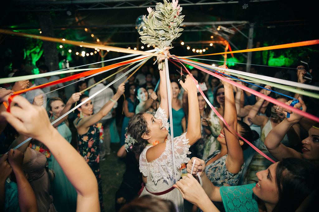 Resumindo: um casamento com chuva onde o sol eram as pessoas. Cada convidado vibrou e se alegrou com a troca de alianças!