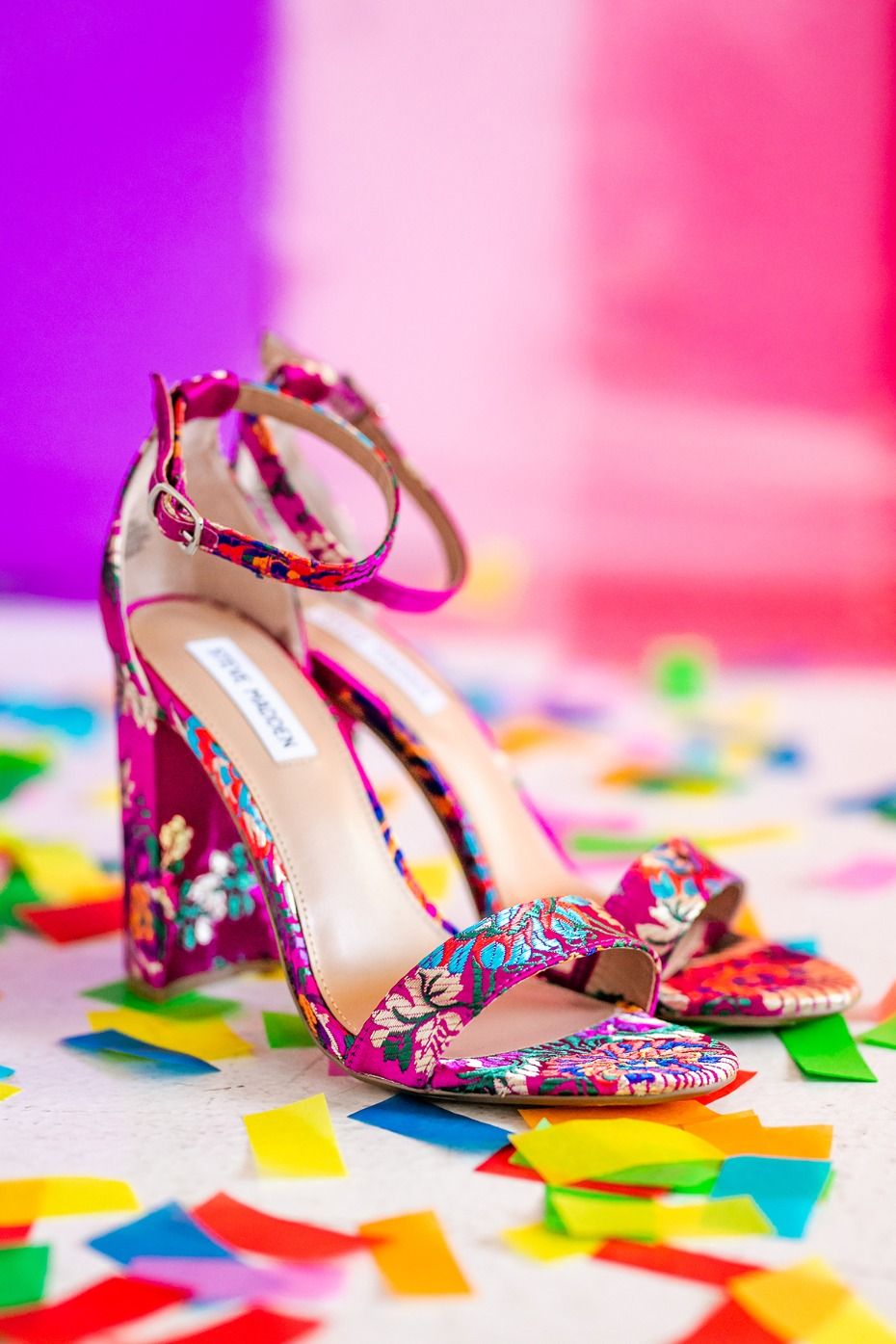 Foi-se o tempo em que sapatos brancos ou off white eram regra. Hoje em dia, temos cada vez mais noivas ousadas que apostam em sapatos coloridos, makes fortes e penteados diferenciados.