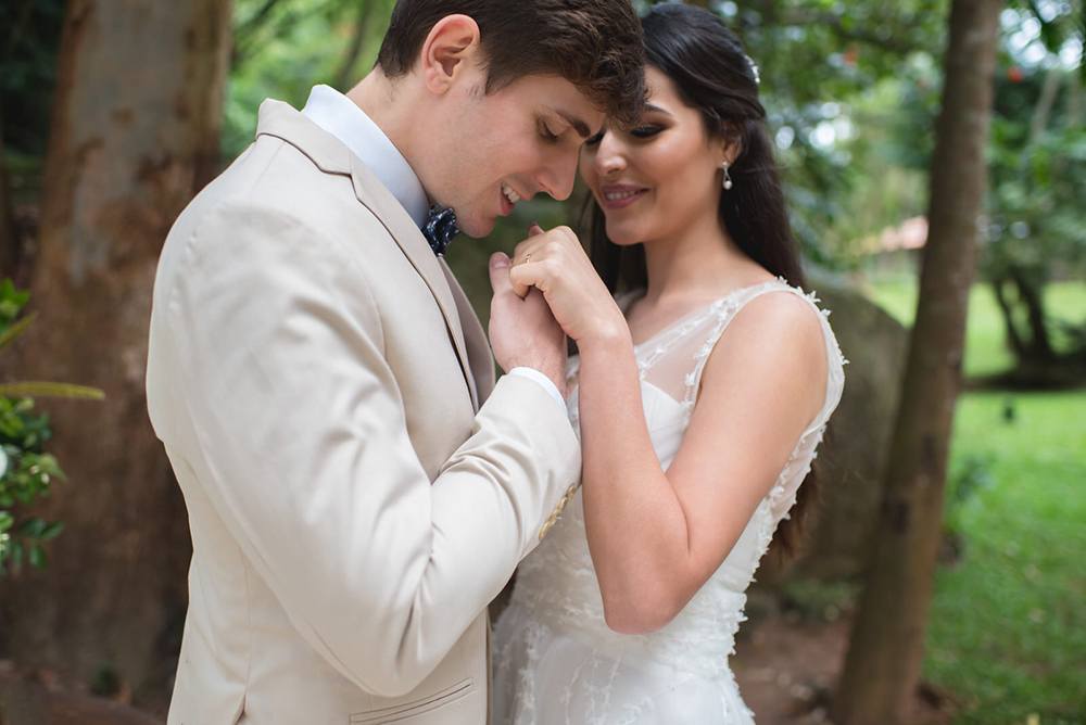 Com o cenário bucólico do Haras Vila Real como pano de fundo, Bruna e Hugo representam noivos românticos e focados um no outro, do jeitinho que tem que ser quando o assunto é a troca de alianças.