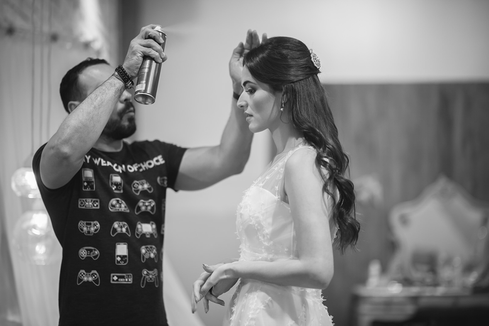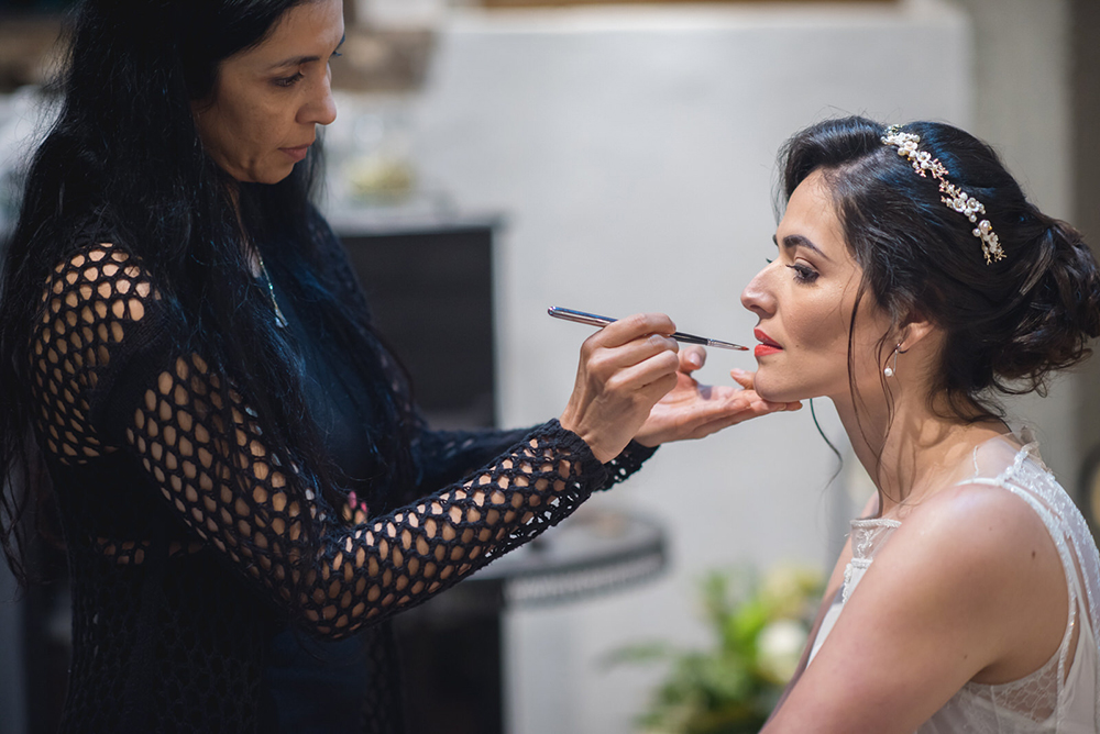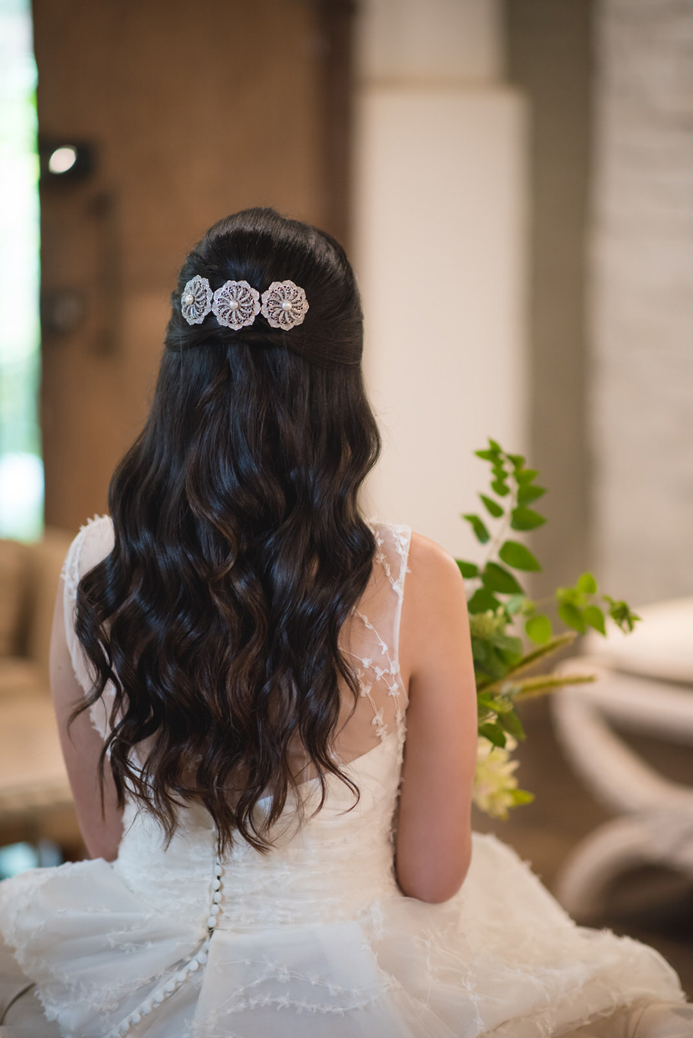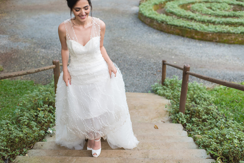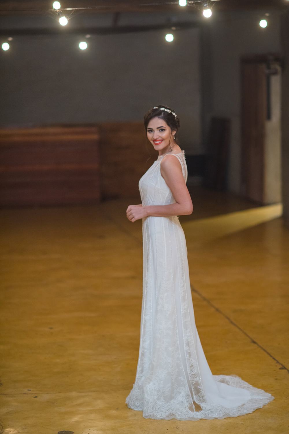 Com cabelos soltos para a cerimônia e presos para o pós, o tchan ficou por conta do batom vermelho usado no final. Vale destacar também os pentes e acessórios Alessandra Cazzaro, tão lindos quanto a noiva.