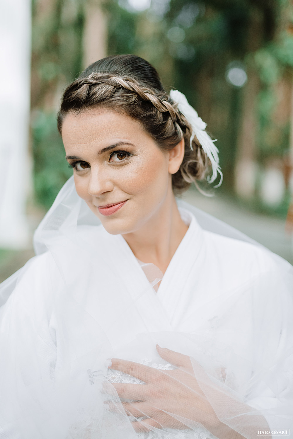 ❥ O look da noiva, que incluiu véu longo e penteado delicado, com trança e coque baixo.