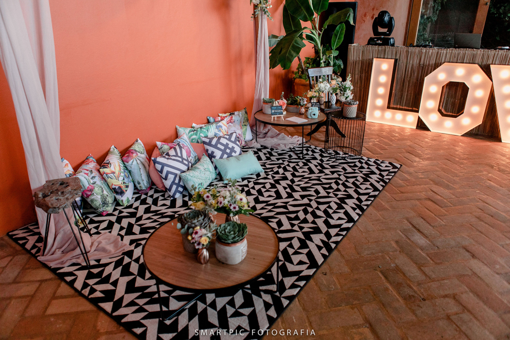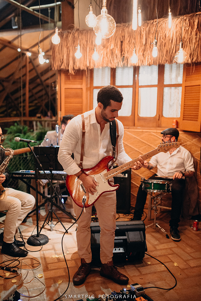 Vestido: Lascivité • Fotografia: Smartpic Fotografia • Filmagem: Fuca Filmes • Cerimonial: Martucheli Eventos • Espaço e buffet: Portal do Equilibrium • Decoração: Somos.de.Coração • Acessório: Ateliê Bem Casada  • Beleza: Dam Pop Up Atelier • Bolos: Keila Negrelli • Doces: Katia Negrelli Oficial • Topo de bolo: Major Tom • DJ e iluminação: DJ Felipe Morgado • Banda: The Hurricane Brothers/Frigazz • Sapatos: Juliana Bicudo  • Brincos: Camila Klein